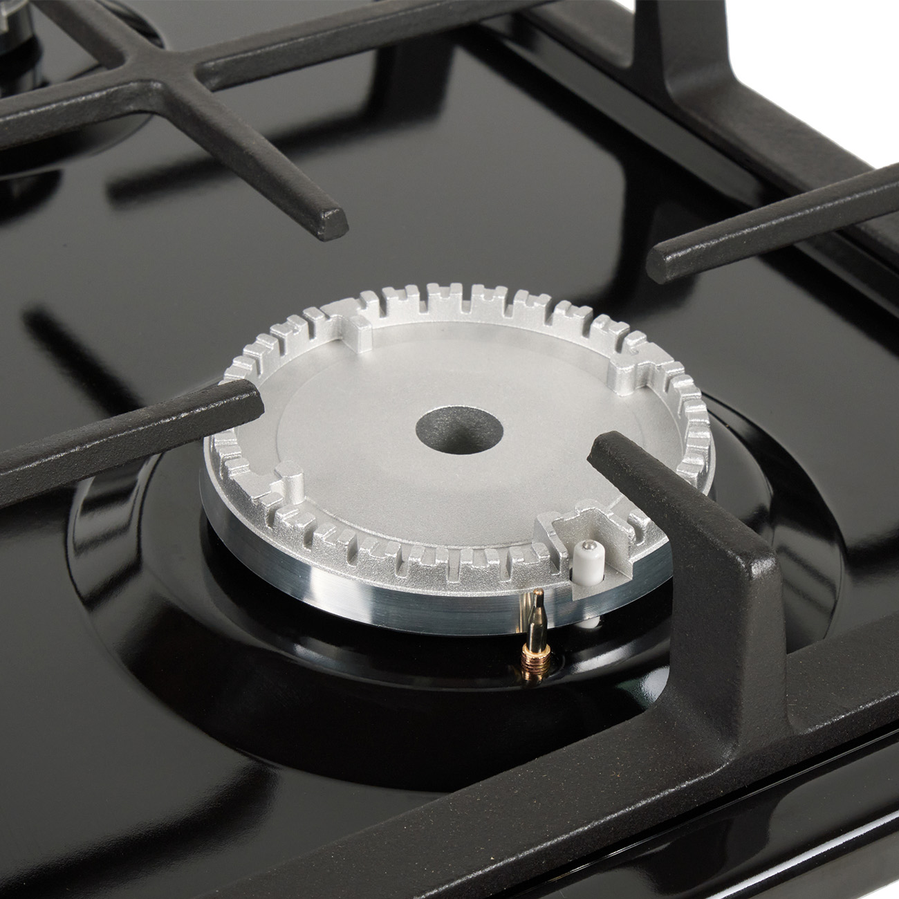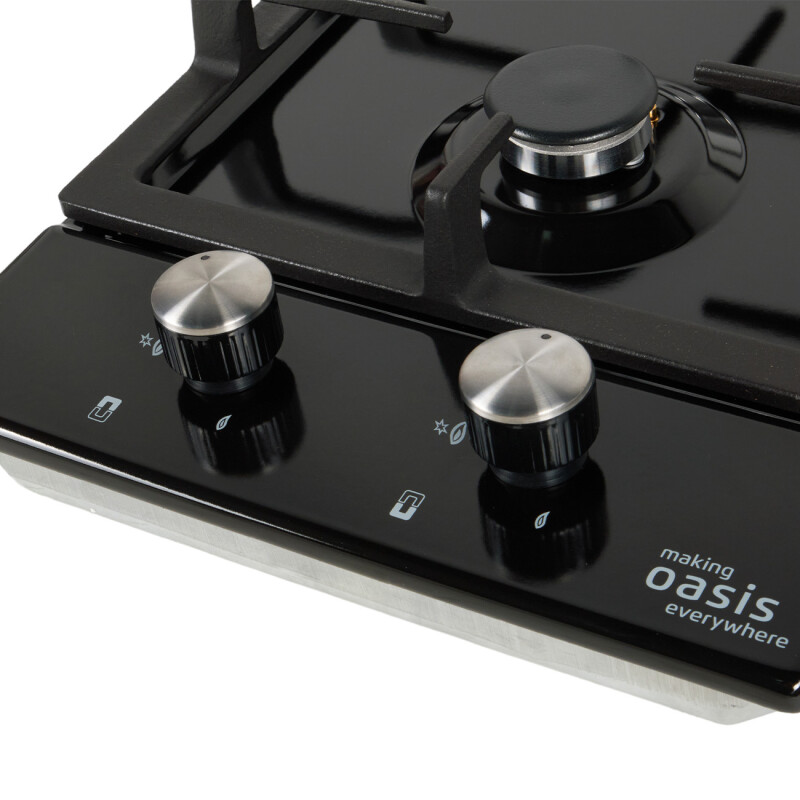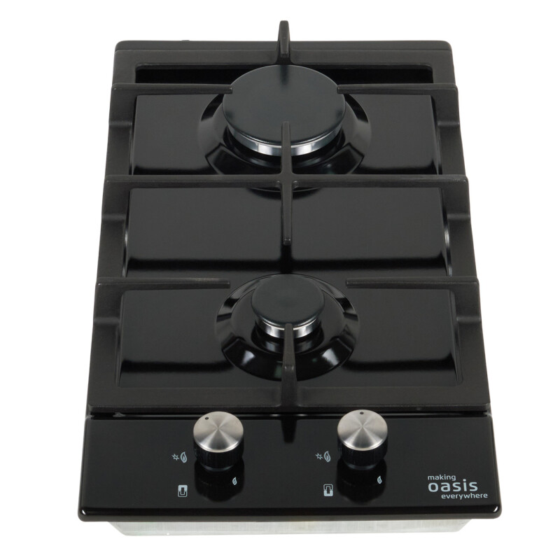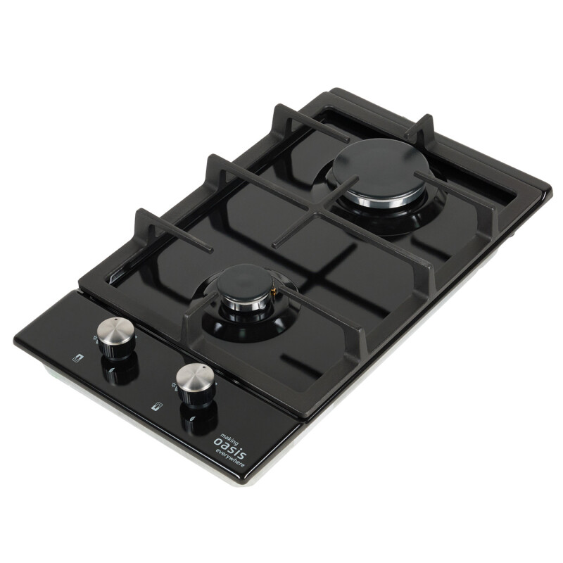 Описаниеповерхность газовая независимая, 30 см, газ на эмали, 2 конфорки, решетки чугунные, черный