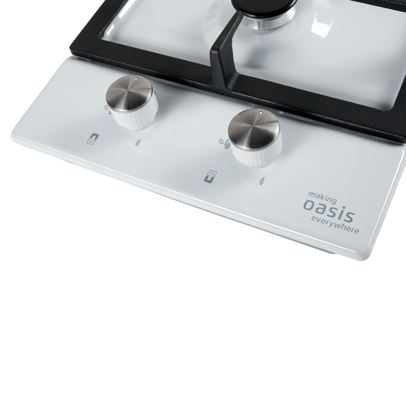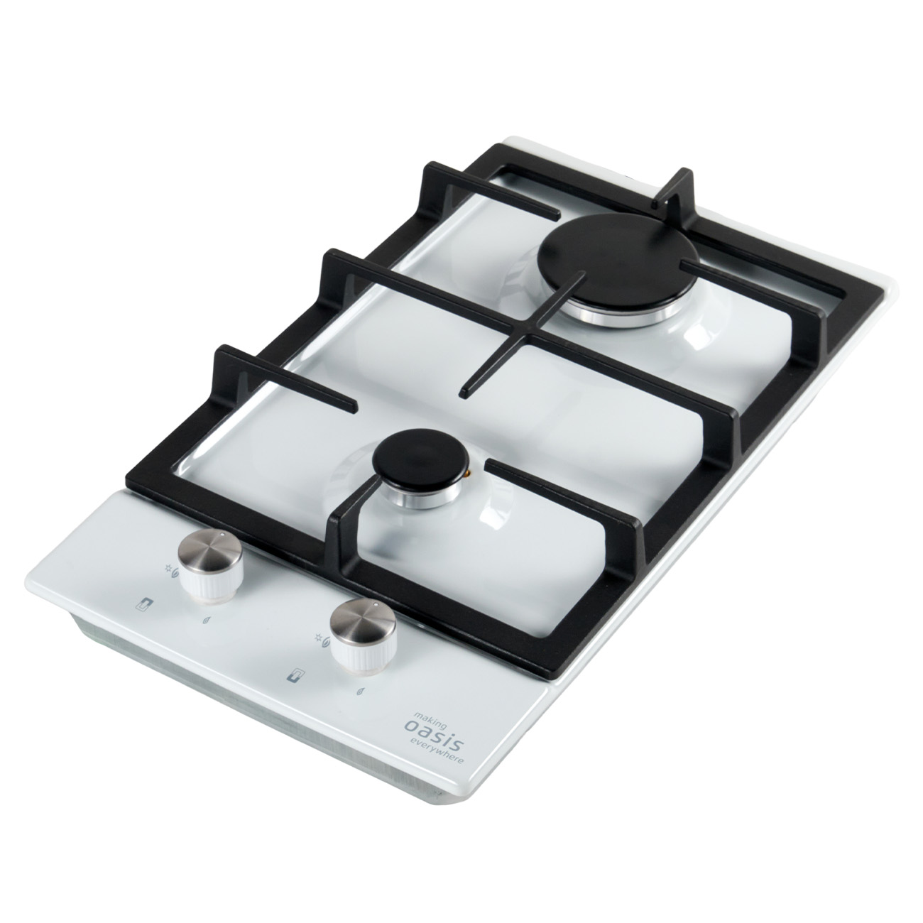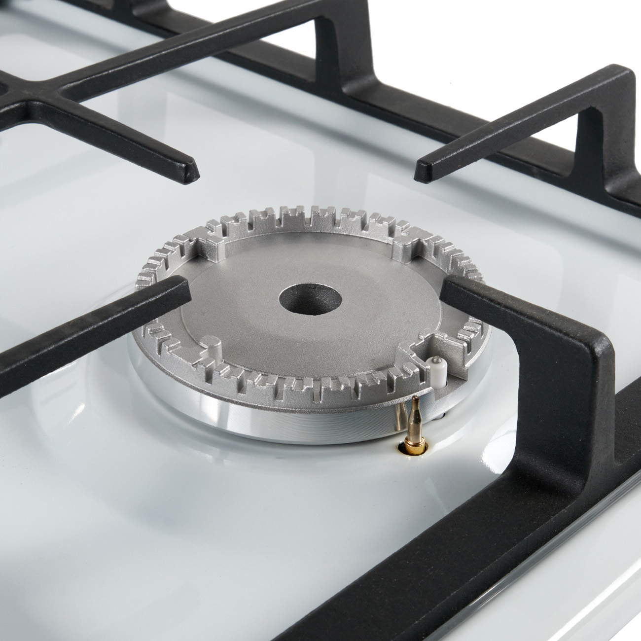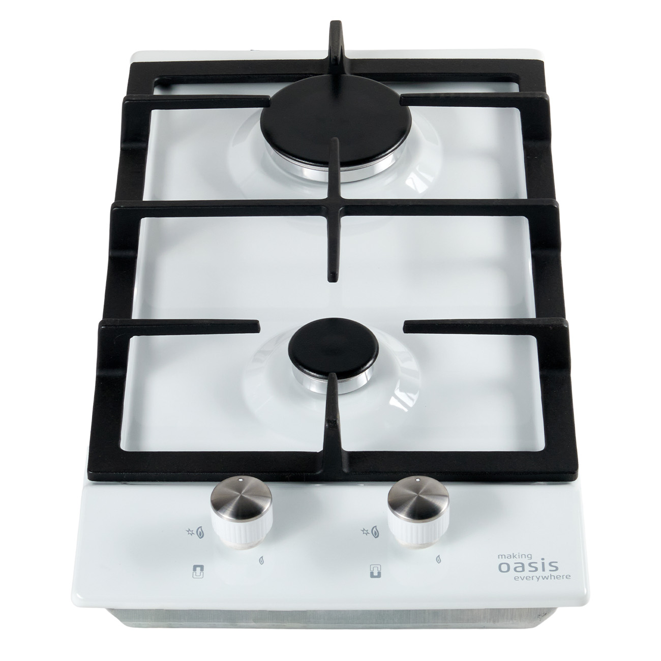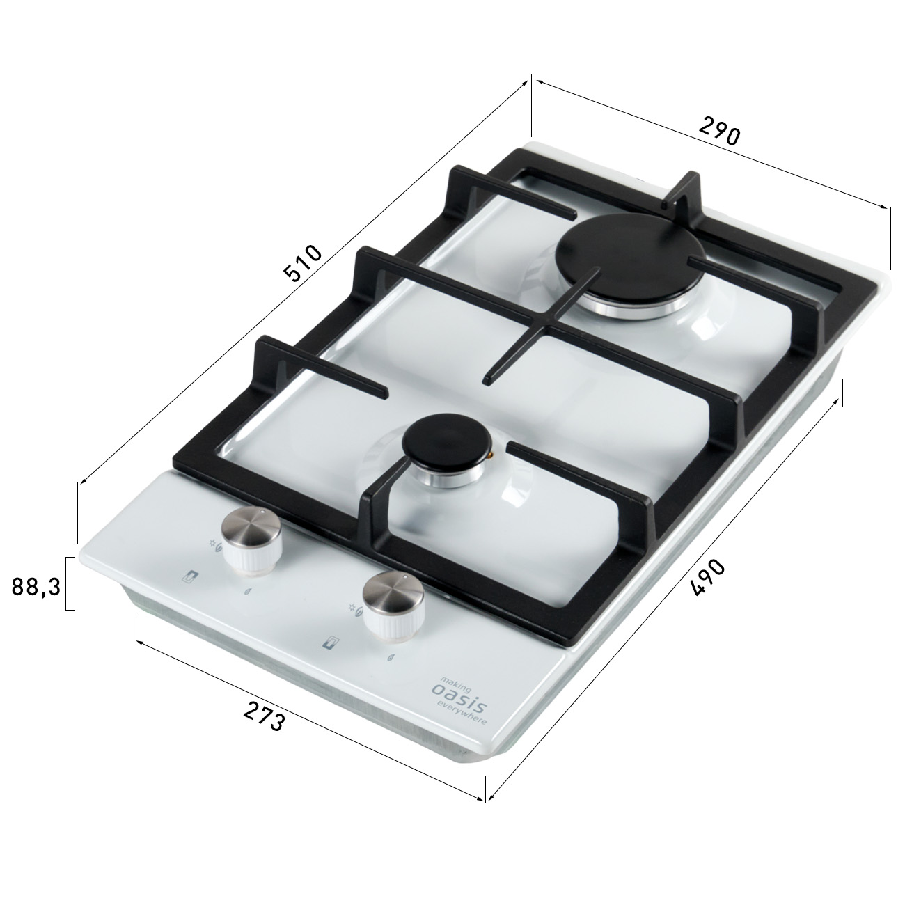 Описаниеповерхность газовая независимая, 30 см, газ на эмали, 2 конфорки, решетки чугунные, белый