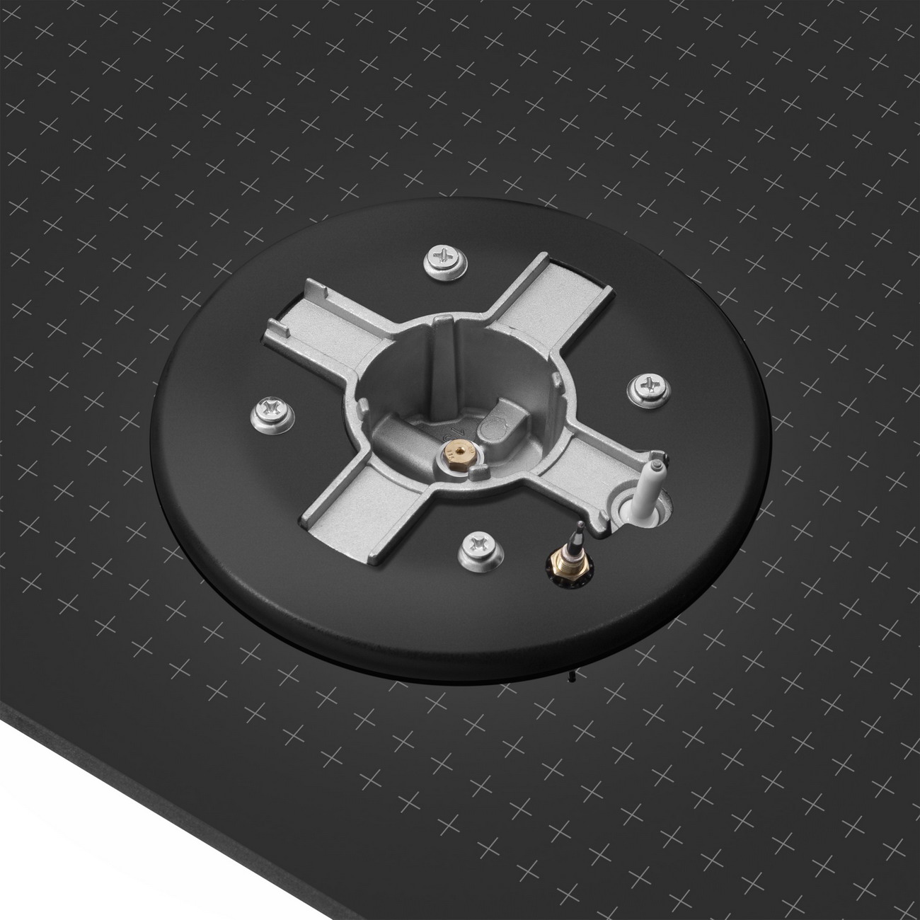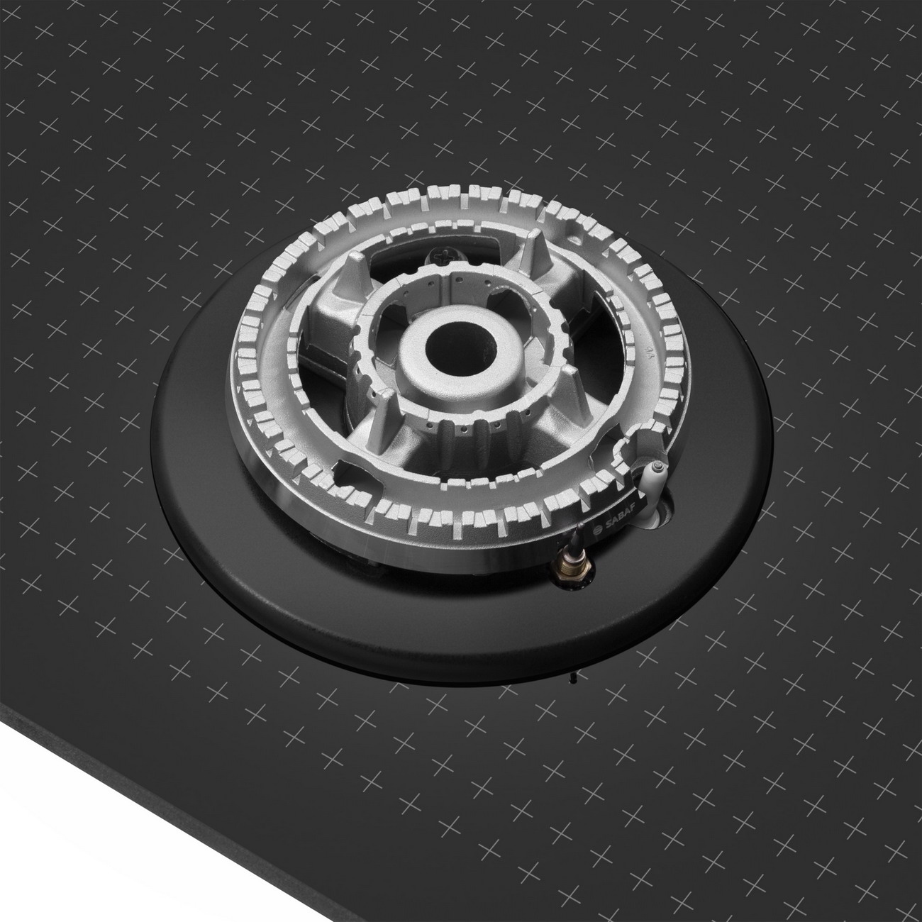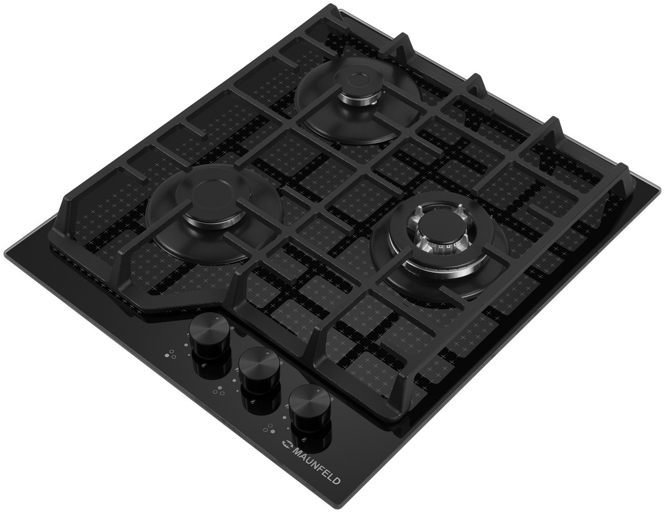 Описаниеповерхность газовая независимая, 45 см, газ на стекле, 3 конфорки, чугунная решетка, черный