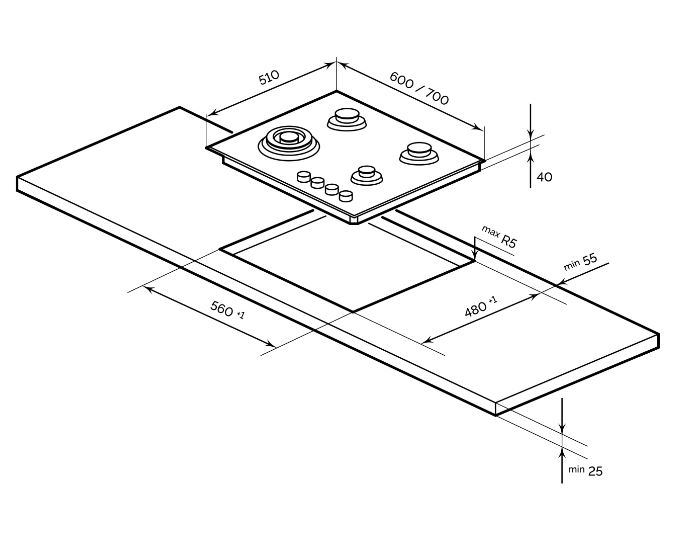 Описаниеповерхность газовая независимая, 60 см, газ на стекле, 4 конфорки, решетки чугунные, черный