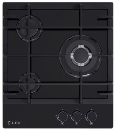Описаниеповерхность газовая независимая, 45 см, газ на стекле, 3 конфорки, решетки чугунные, черный