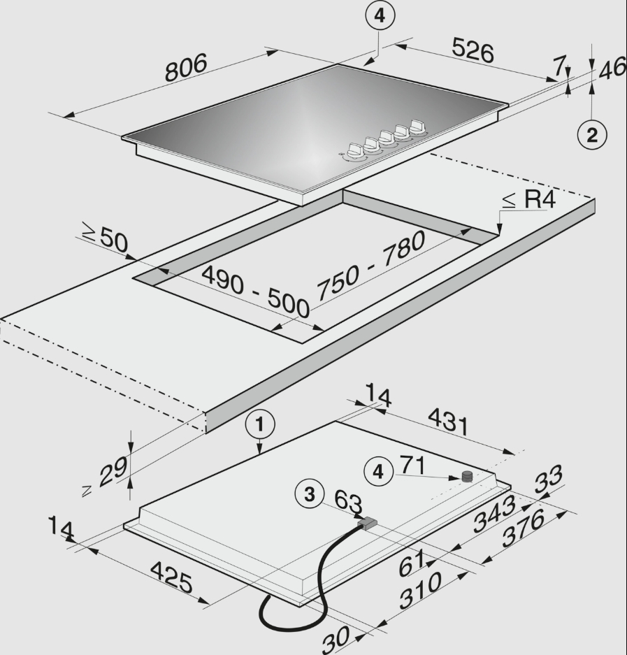 Описаниеповерхность газовая независимая, 80 см, газ на стекле, 5 конфорок, черный