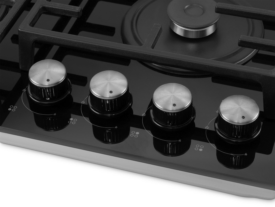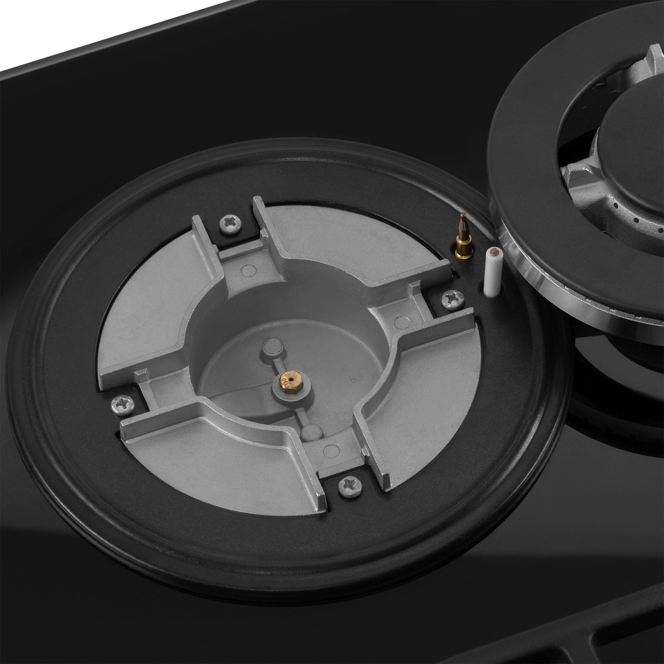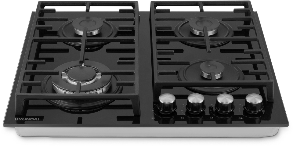 Описаниеповерхность газовая независимая, 60 см, газ на стекле, 4 конфорки, решетки чугунные, черный