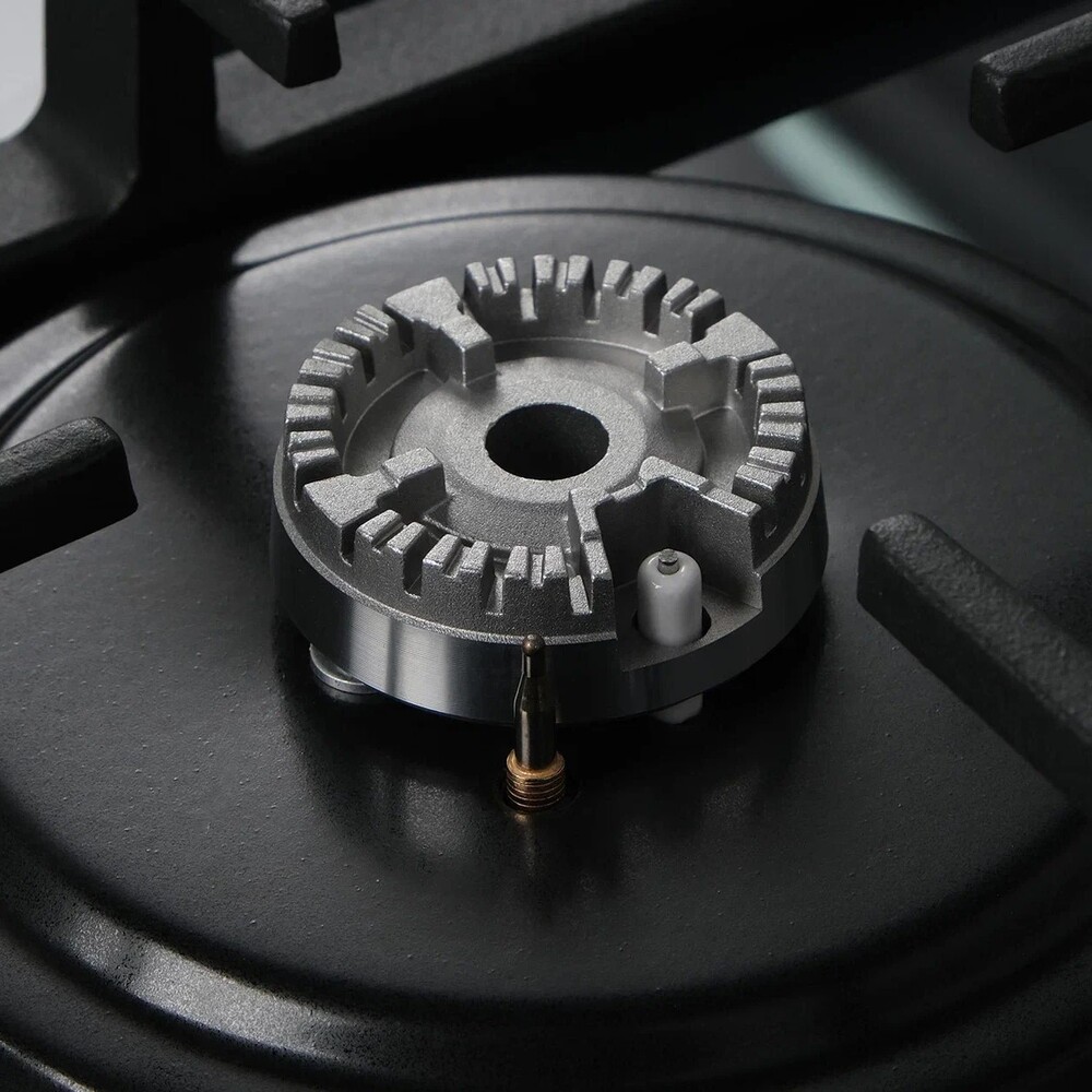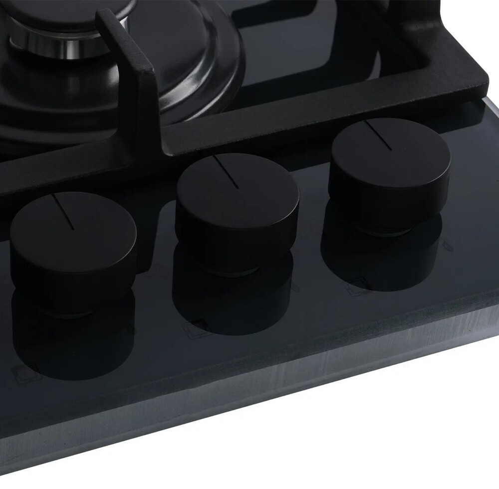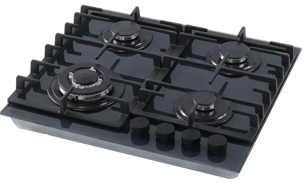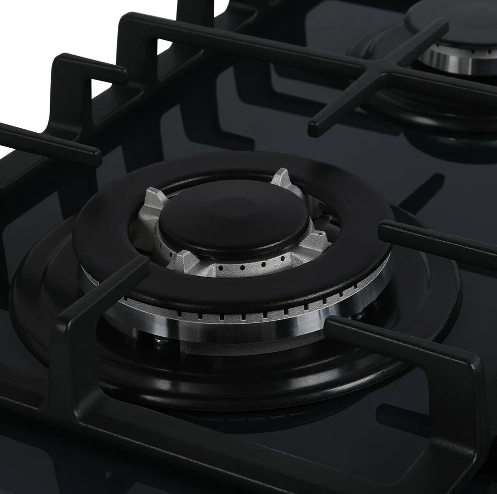 Описаниеповерхность газовая независимая, 60 см, газ на стекле, 4 конфорки, решетки чугунные, темно-серый
