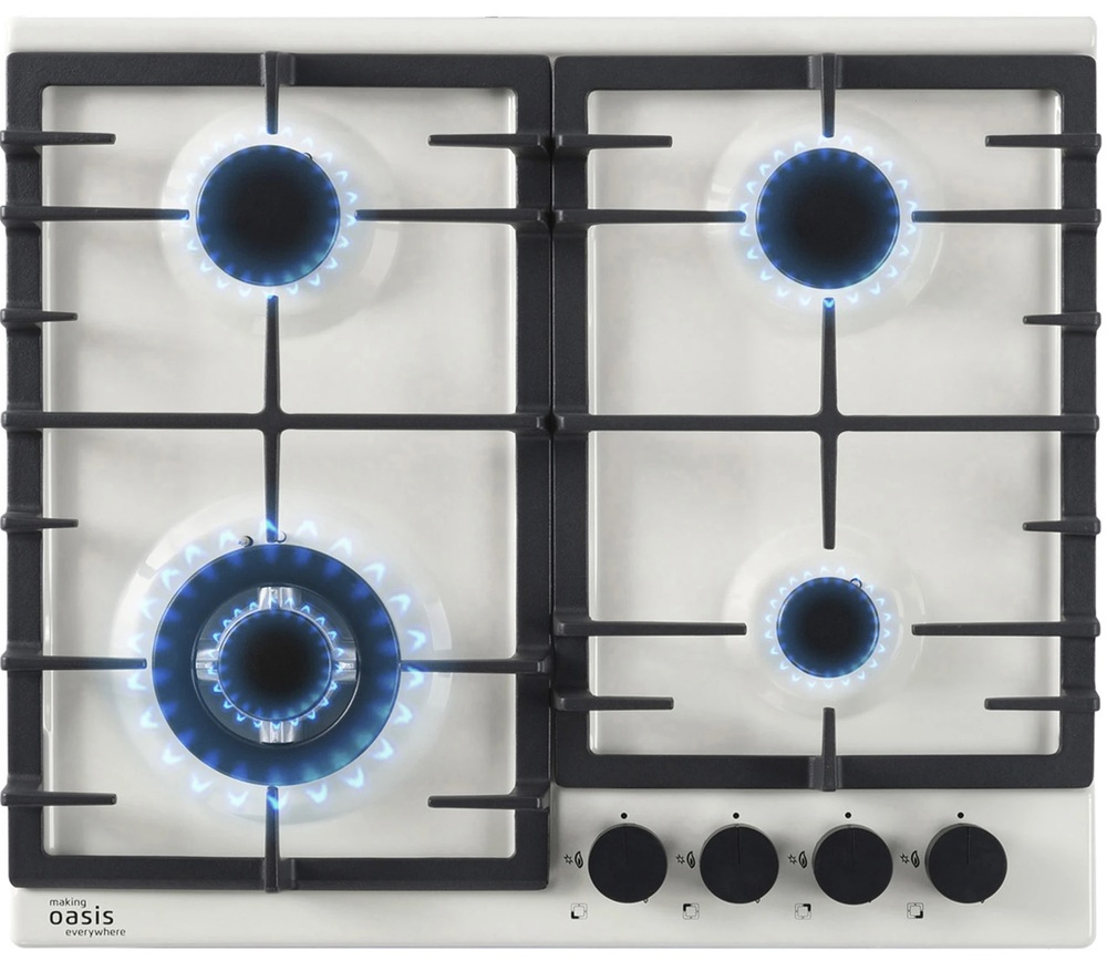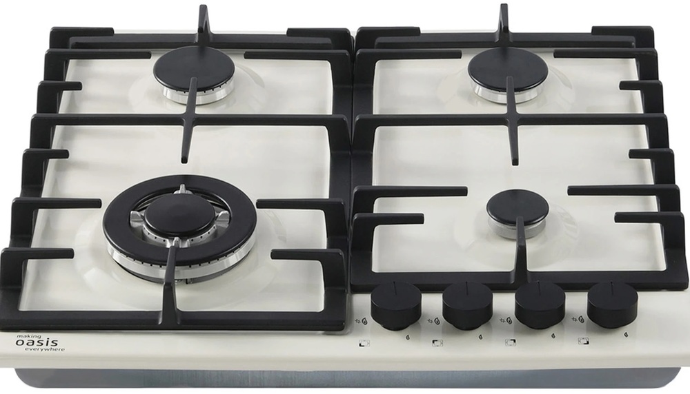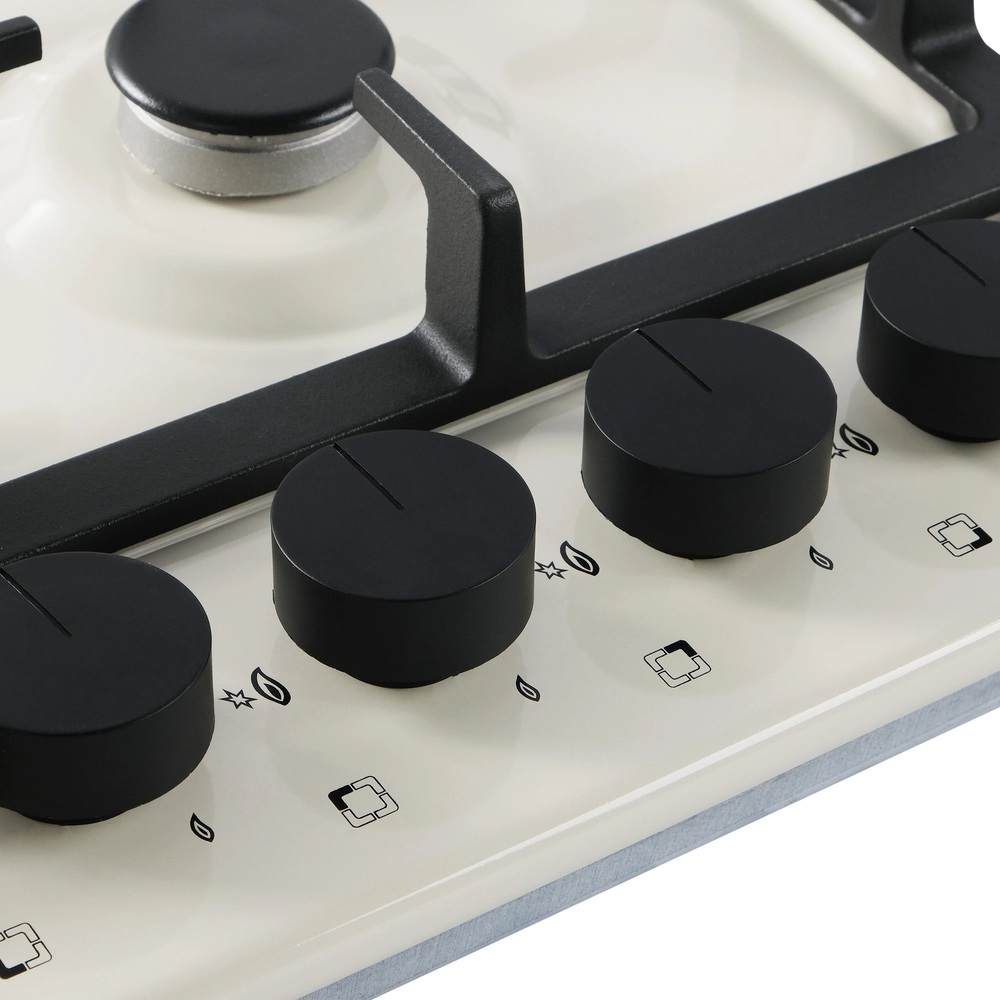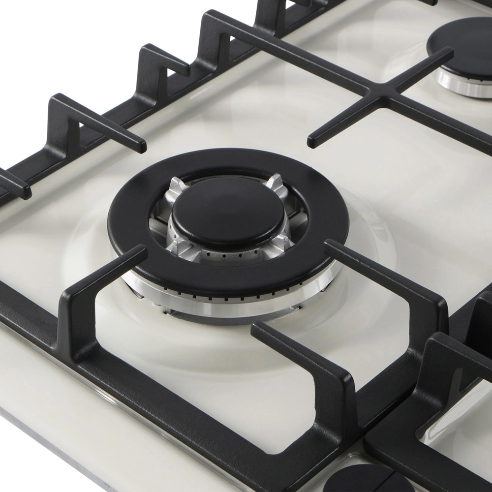 Описаниеповерхность газовая независимая, 60 см, газ на эмали, 4 конфорки, решетки чугунные, бежевый