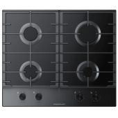 Описаниеповерхность газовая независимая, 60 см, газ на стекле, 4 конфорки, чугунная решетка, черный