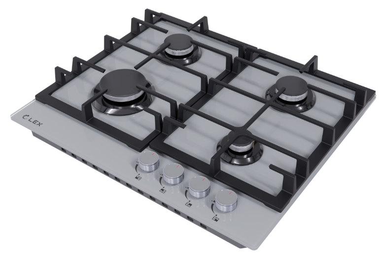 Описаниеповерхность газовая независимая, 60 см, газ на стекле, 4 конфорки, решетки чугунные, серый