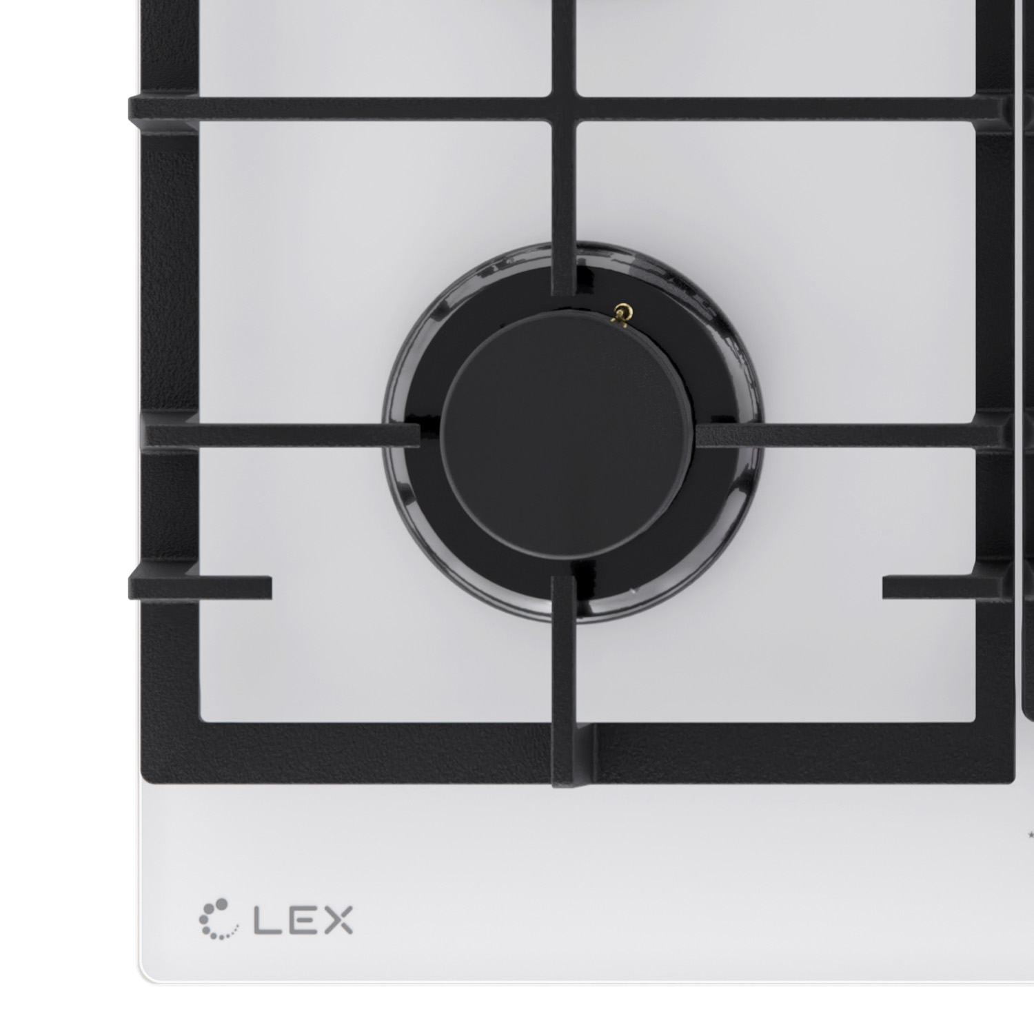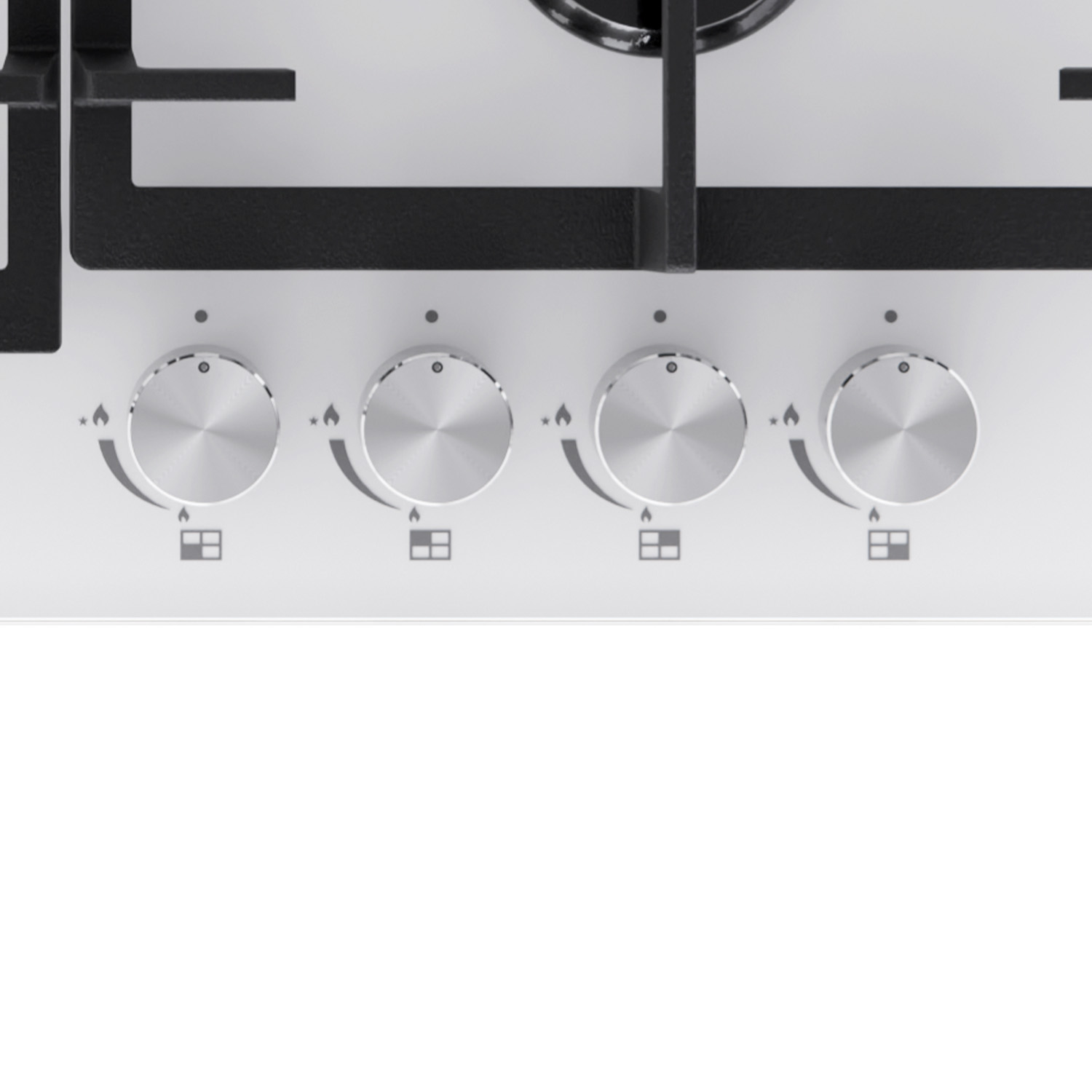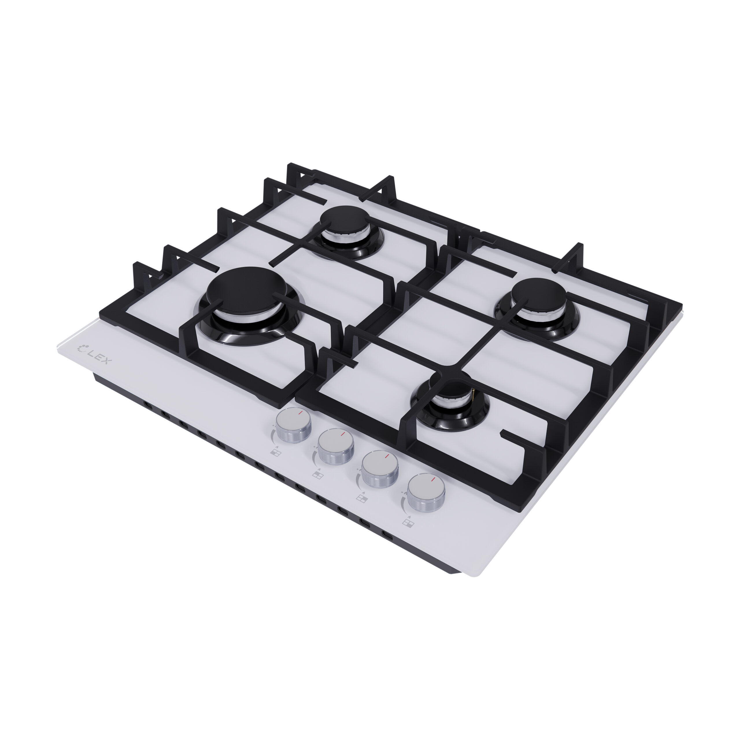 Описаниеповерхность газовая независимая, 60 см, газ на стекле, 4 конфорки, решетки чугунные, белый
