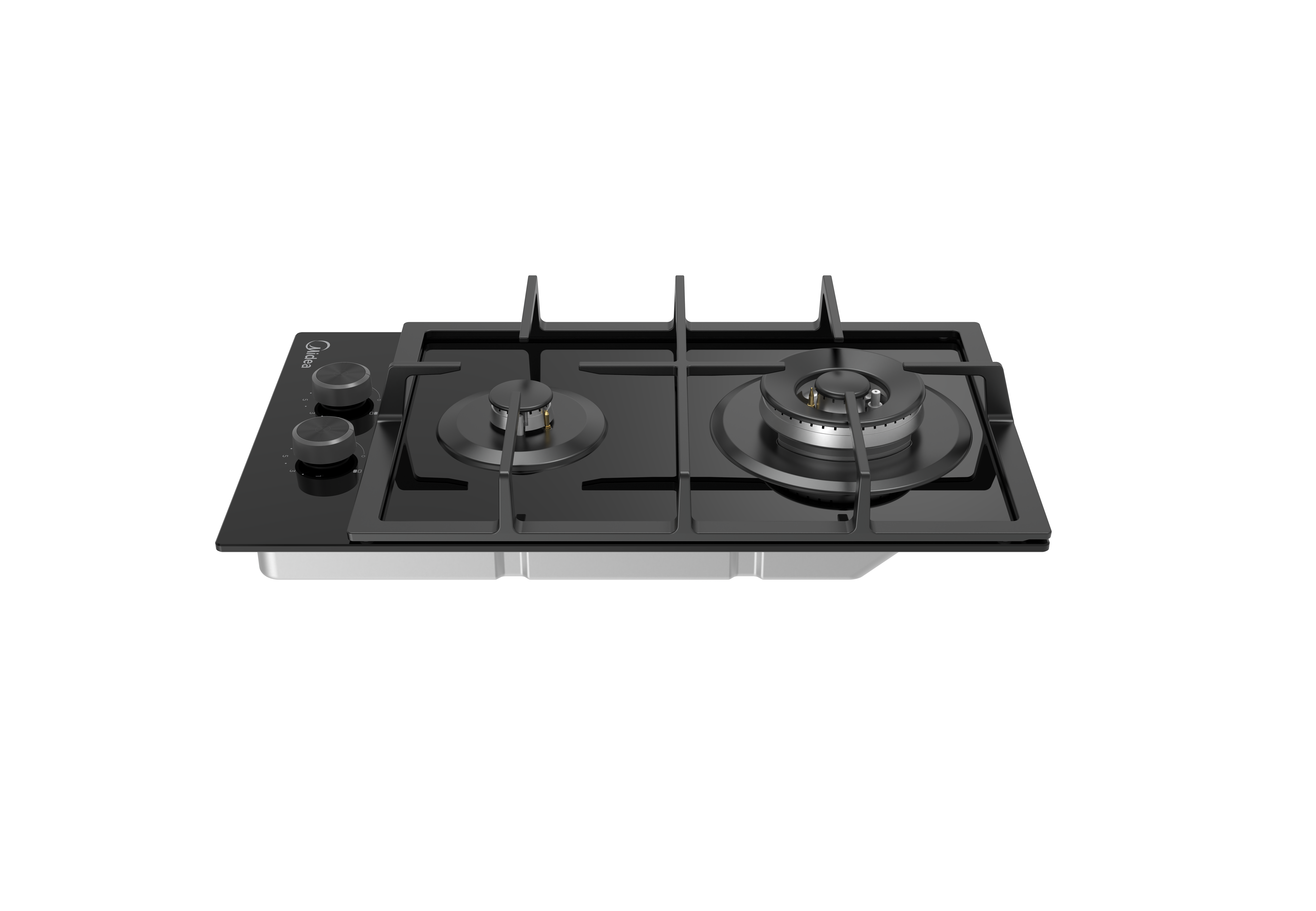 Описаниеповерхность газовая независимая, 30 см, газ на стекле, 2 конфорки, решетки чугунные, черный