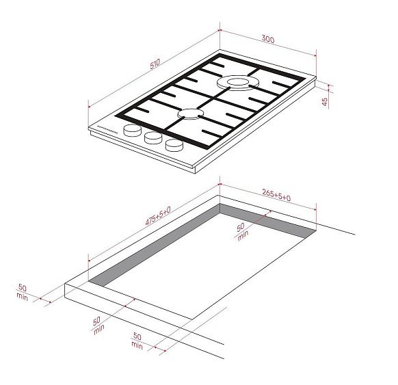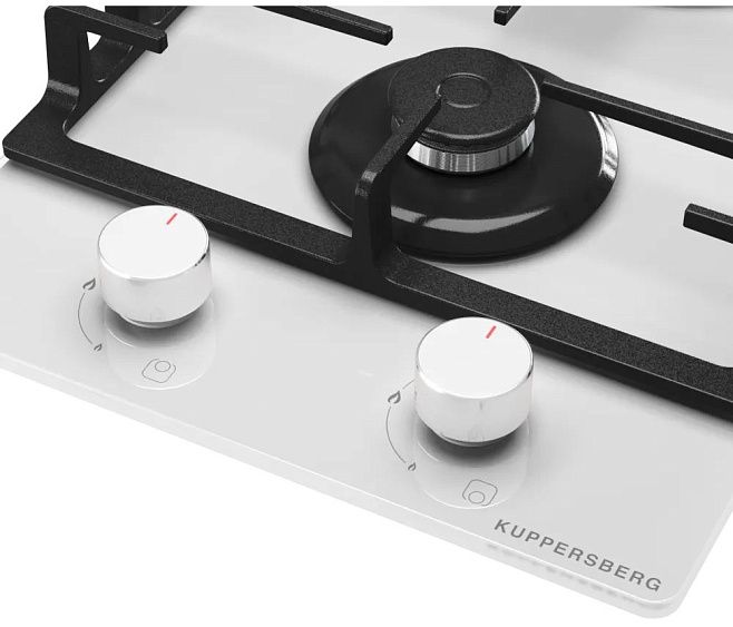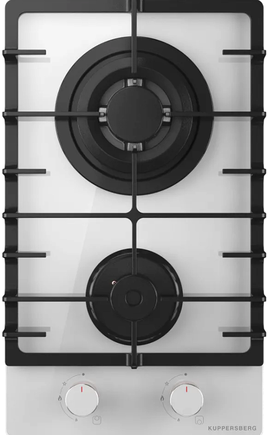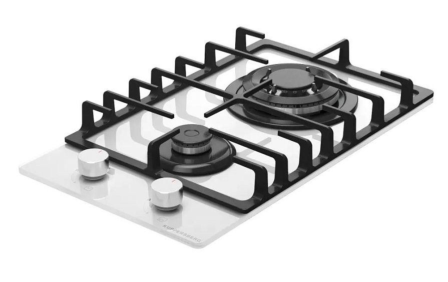 Описаниеповерхность газовая независимая, 30 см, газ на стекле, 2 конфорки, решетки чугунные, белый