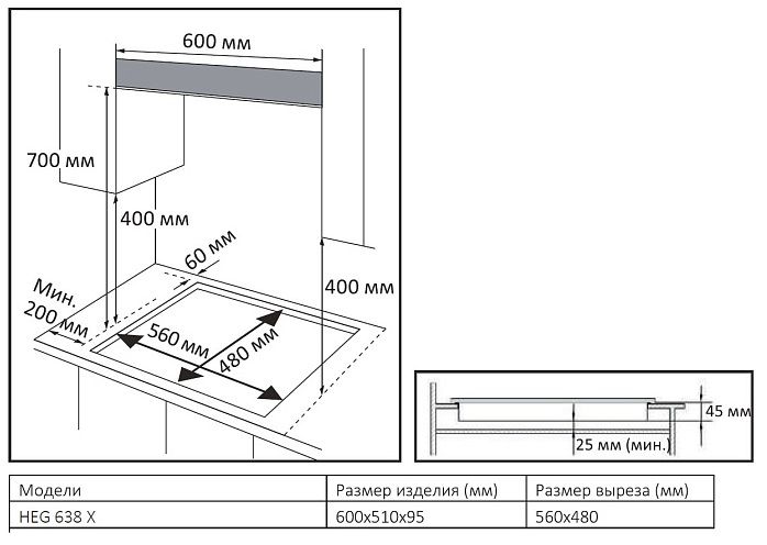Evelux HEG 638 X Газовая поверхность