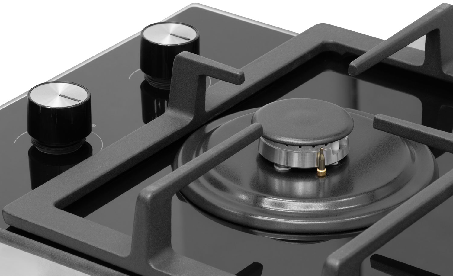 Описаниеповерхность газовая, 30 см, газ на стекле, 2 конфорки, чугунные решетки, черный