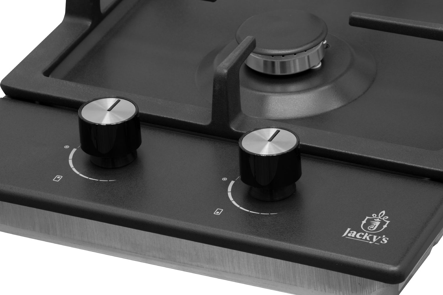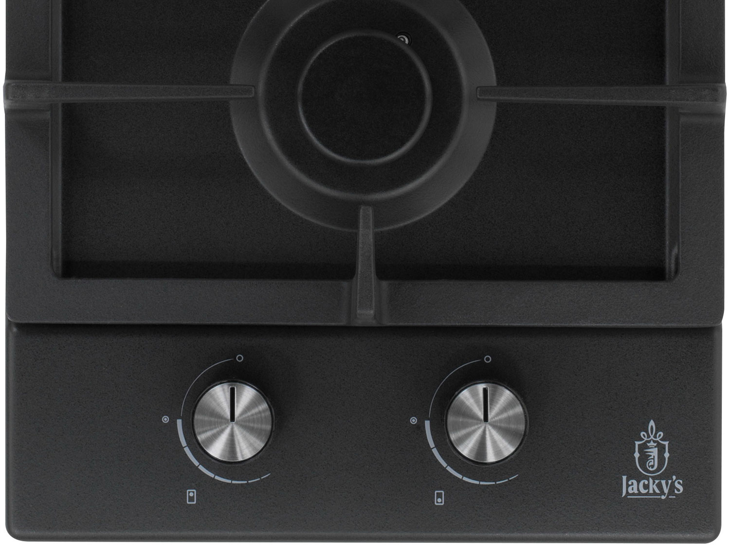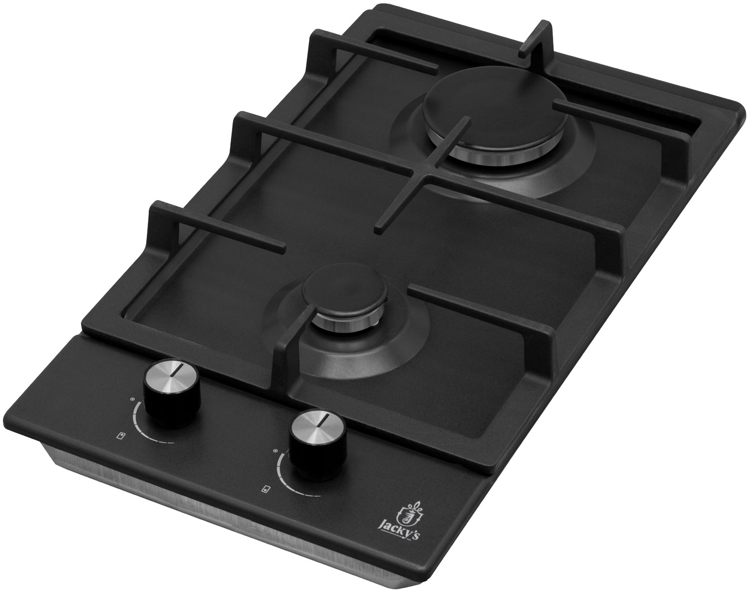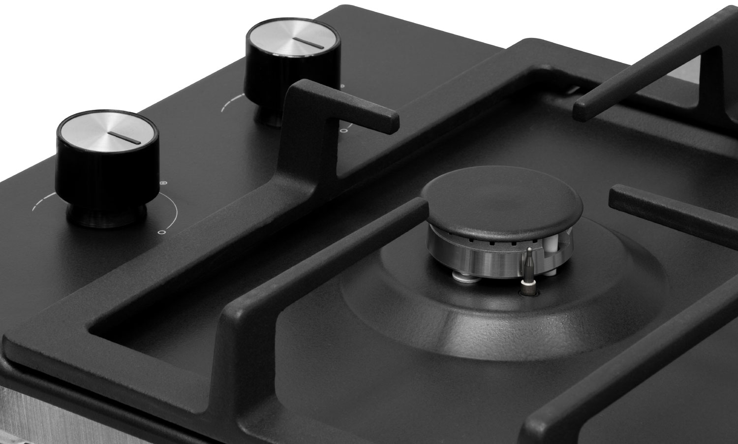 Описаниеповерхность газовая, 30 см, газ на стекле, 2 конфорки, чугунные решетки, черный