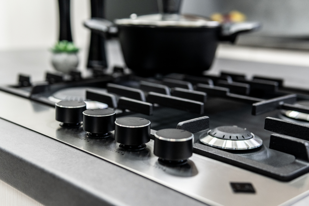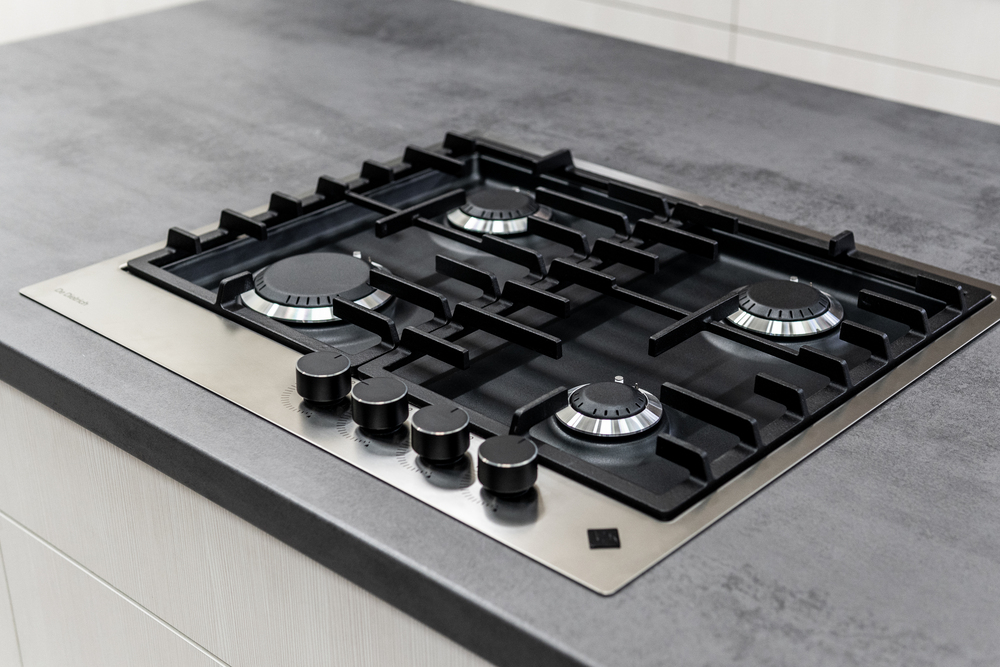 Описаниеповерхность газовая, 60 см, газ на эмали, 4 конфорки, решетки чугунные, платина/черный