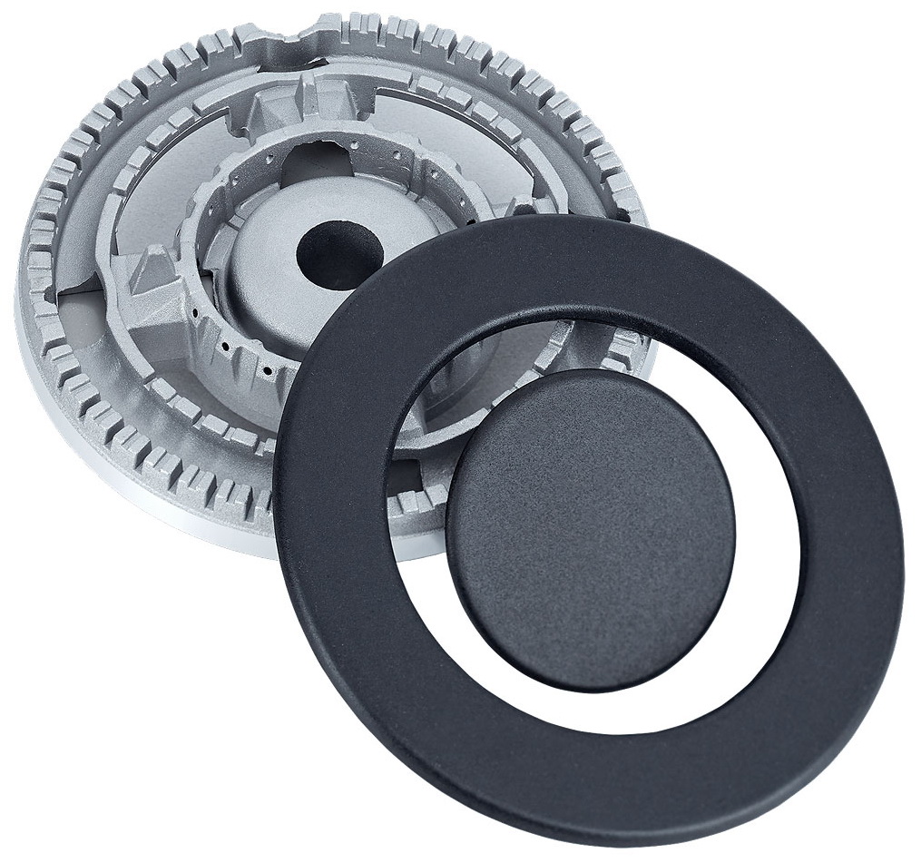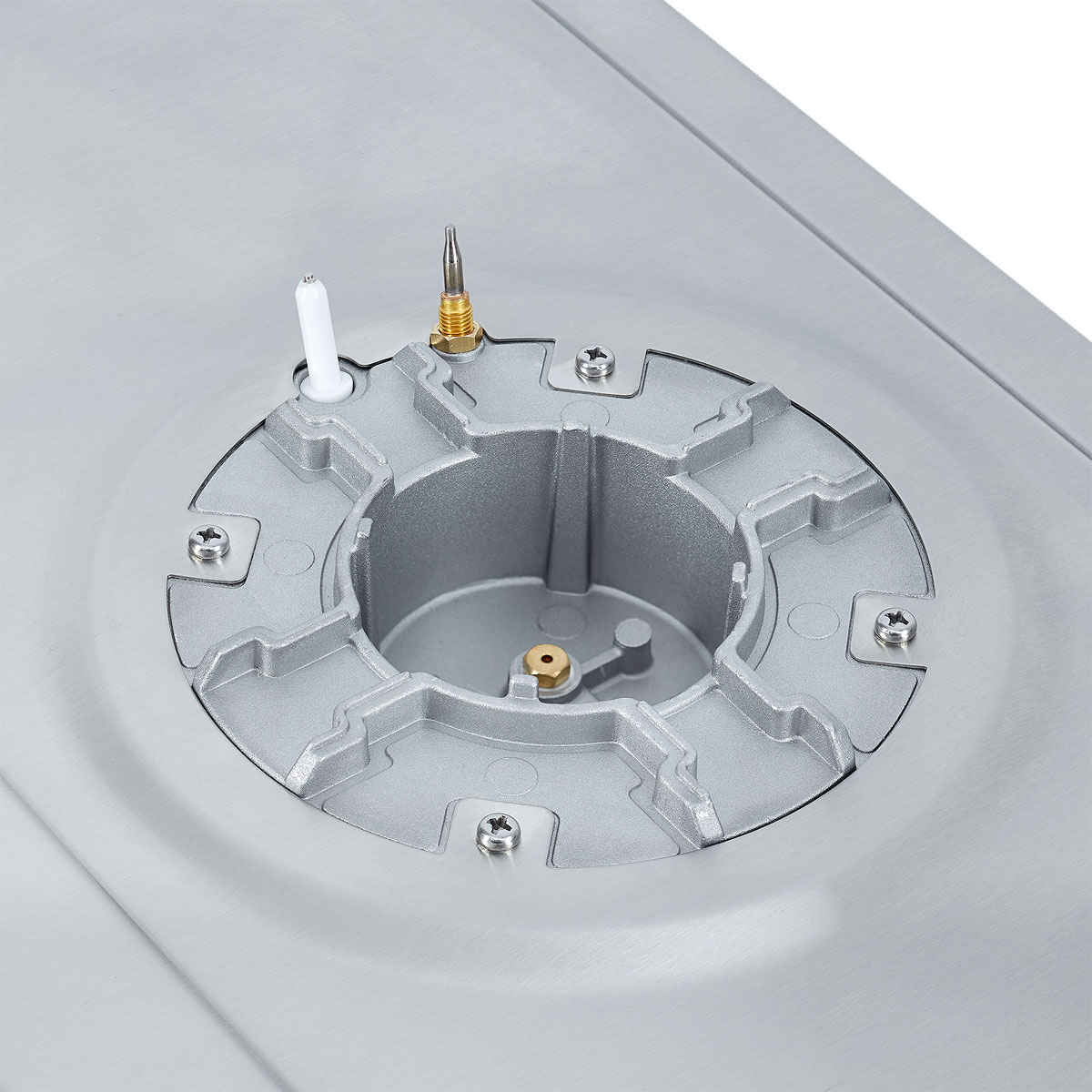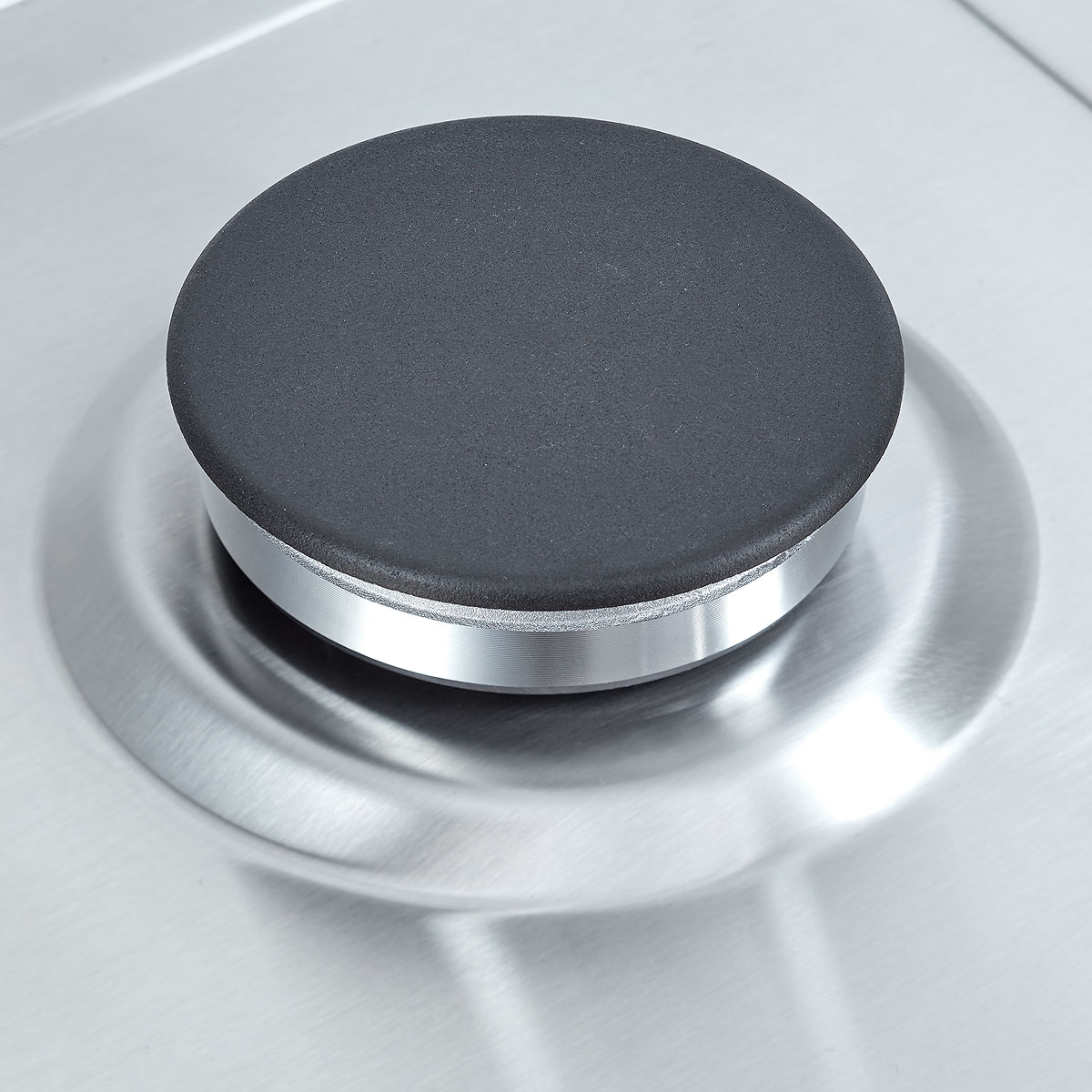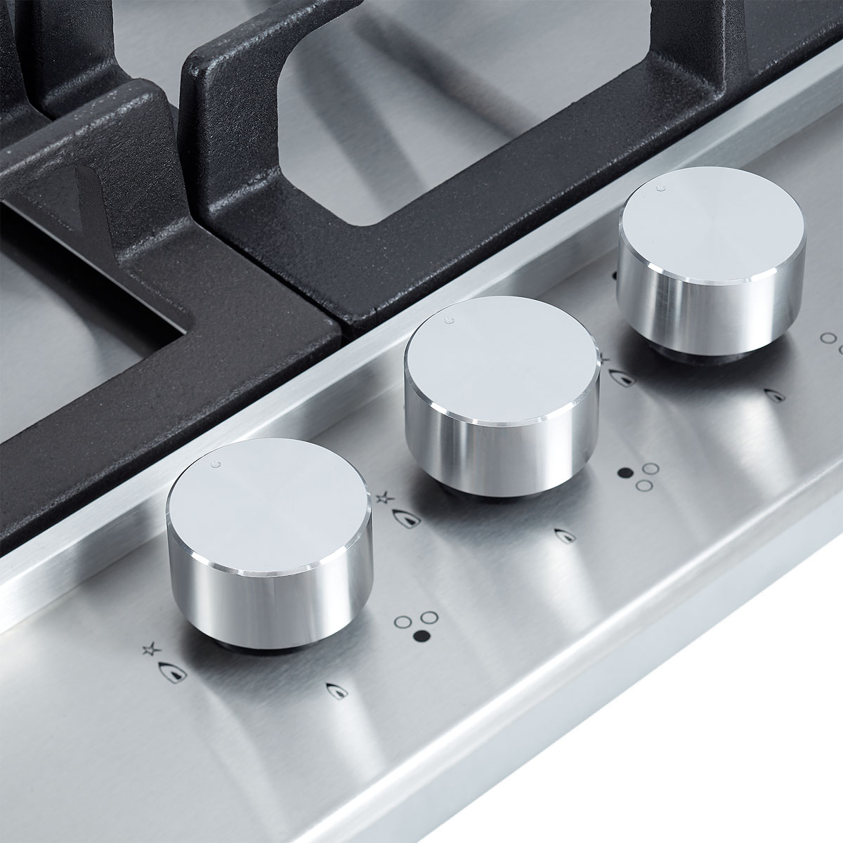 Описаниеповерхность газовая, 45 см, газ на металле, 3 конфорки, решетки чугунные, нержавеющая сталь