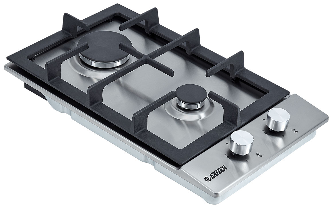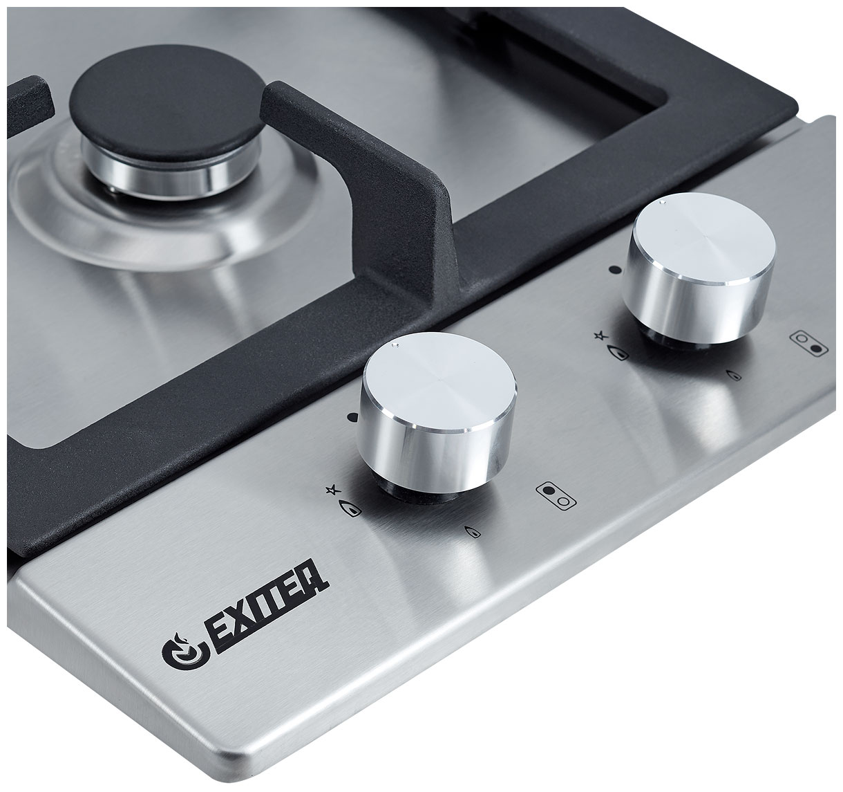 Описаниеповерхность газовая, 30 см, газ на металле, 2 конфорки, решетки чугунные, нержавеющая сталь