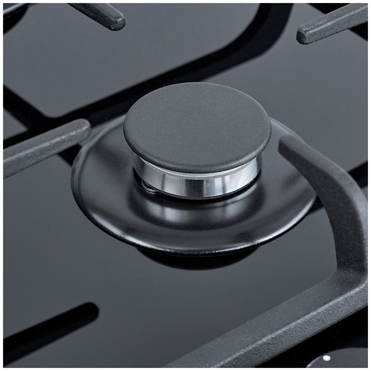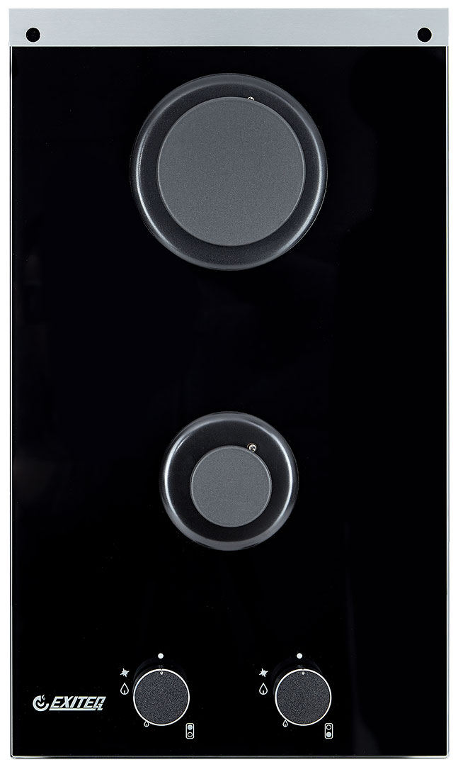 Описаниеповерхность газовая, 30 см, газ на стекле, 2 конфорки, решетки чугунные, черный