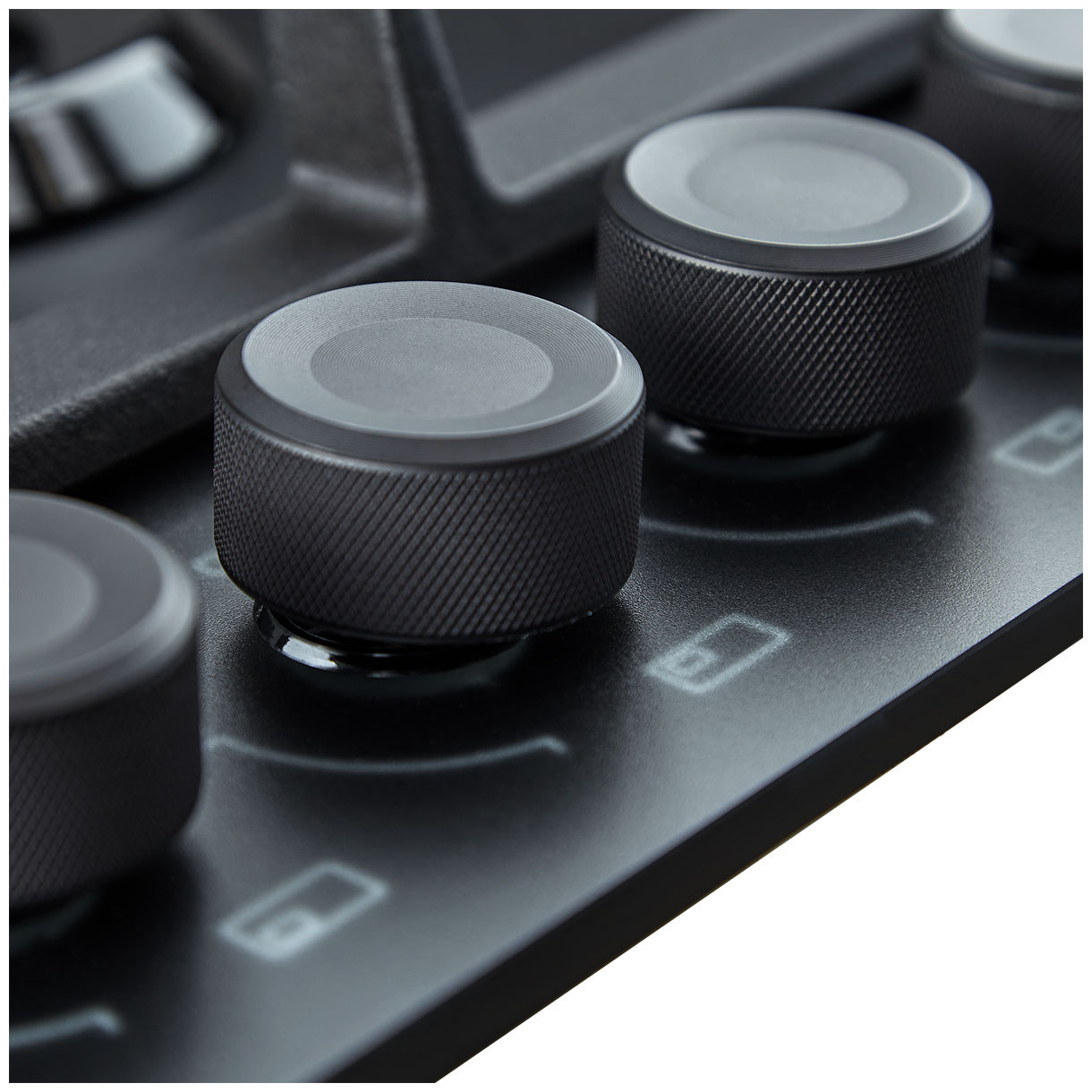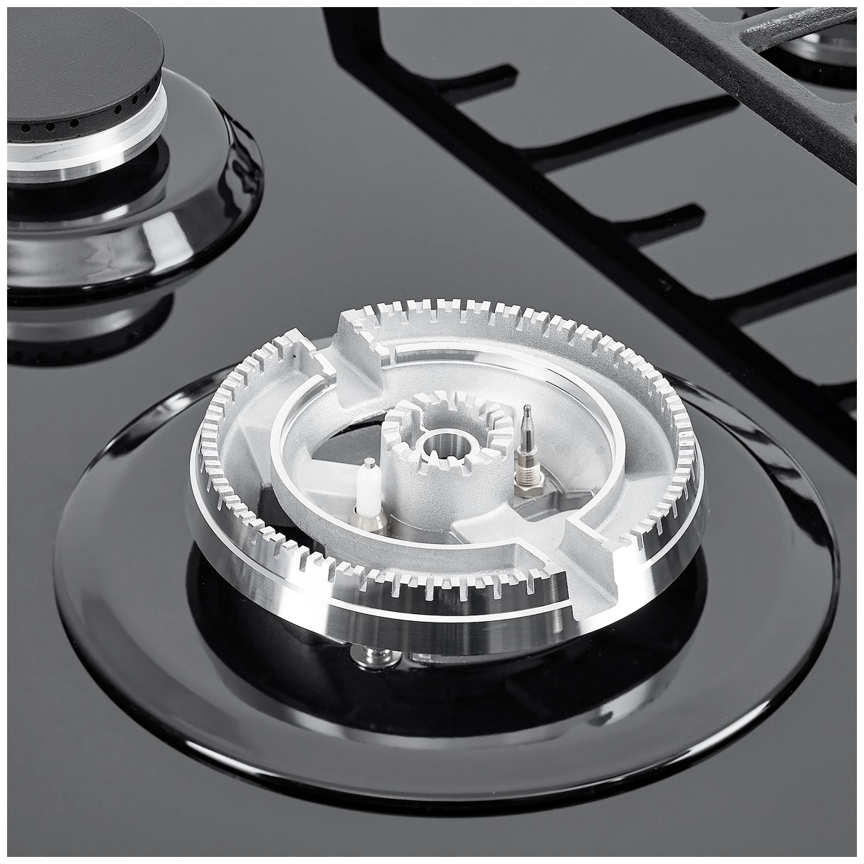 Описаниеповерхность газовая, 60 см, газ на стекле, 4 конфорки, решетки чугунные, черный матовый