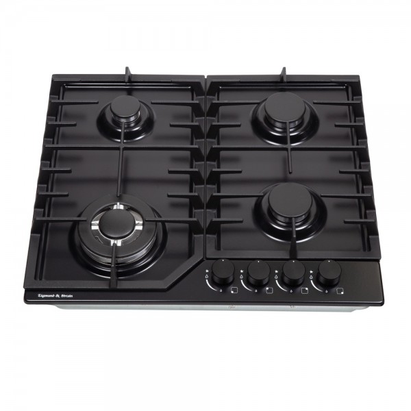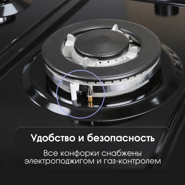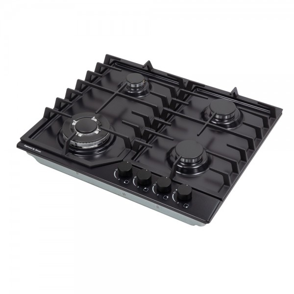 Описаниеповерхность газовая, 60 см, газ на эмали, 4 конфорки, решетки чугунные, черный
