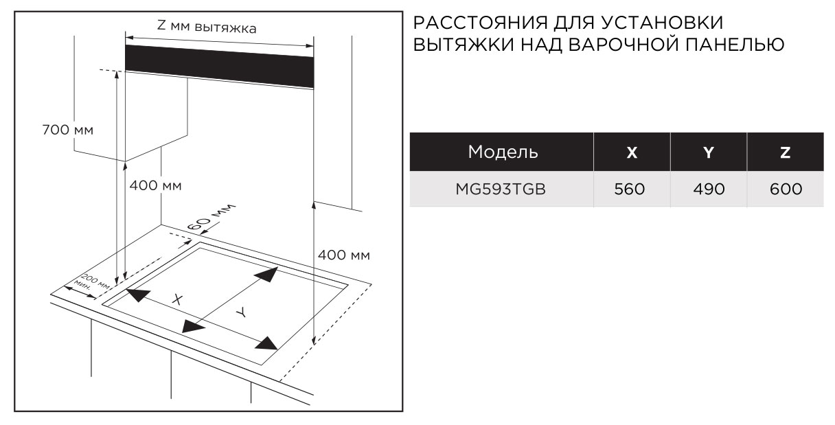 Описаниеповерхность газовая, 60 см, газ на стекле, 4 конфорки, решетки чугунные, черный