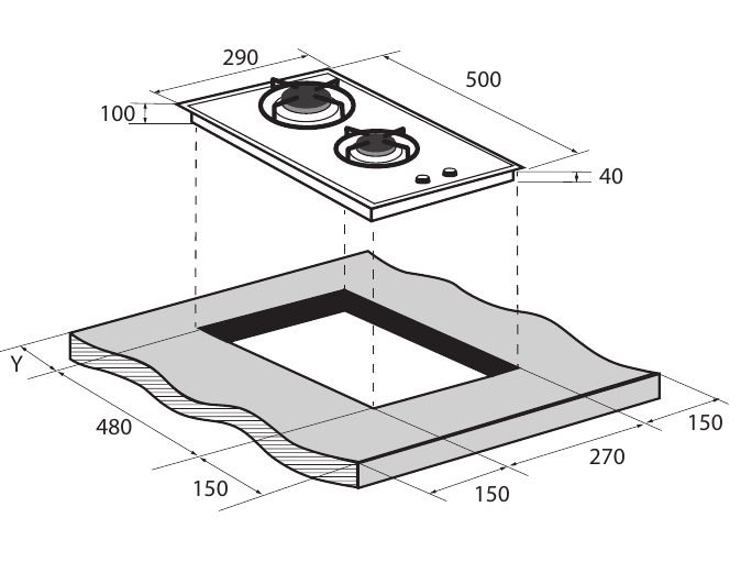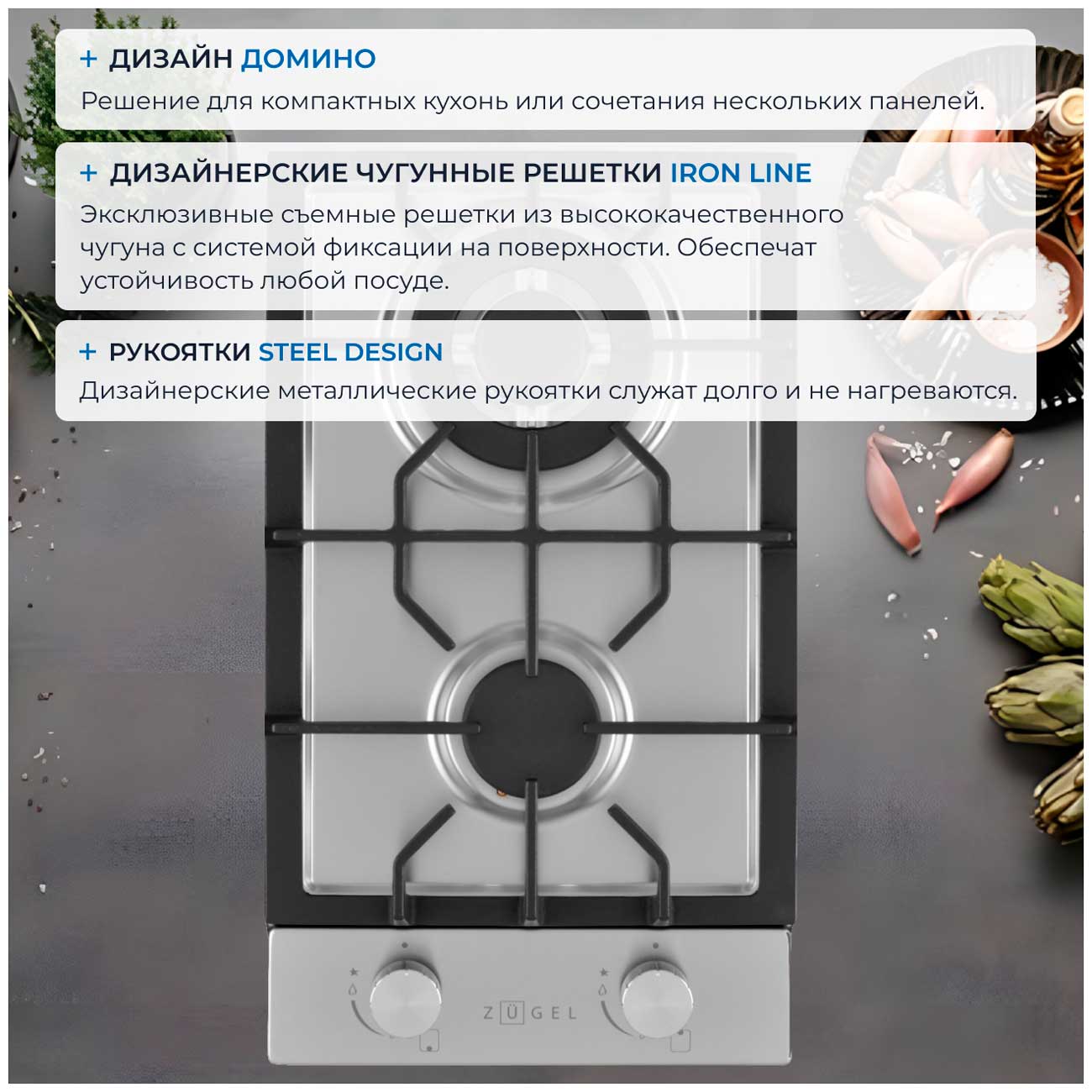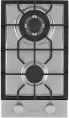 Описаниеповерхность газовая, 30 см, газ на металле, 2 конфорки, решетка чугунная, нержавеющая сталь