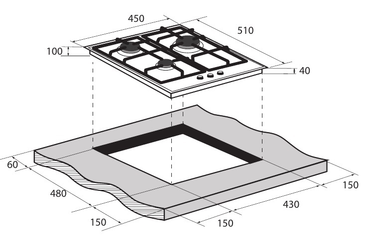 ZUGEL ZGH450W Газовая поверхность