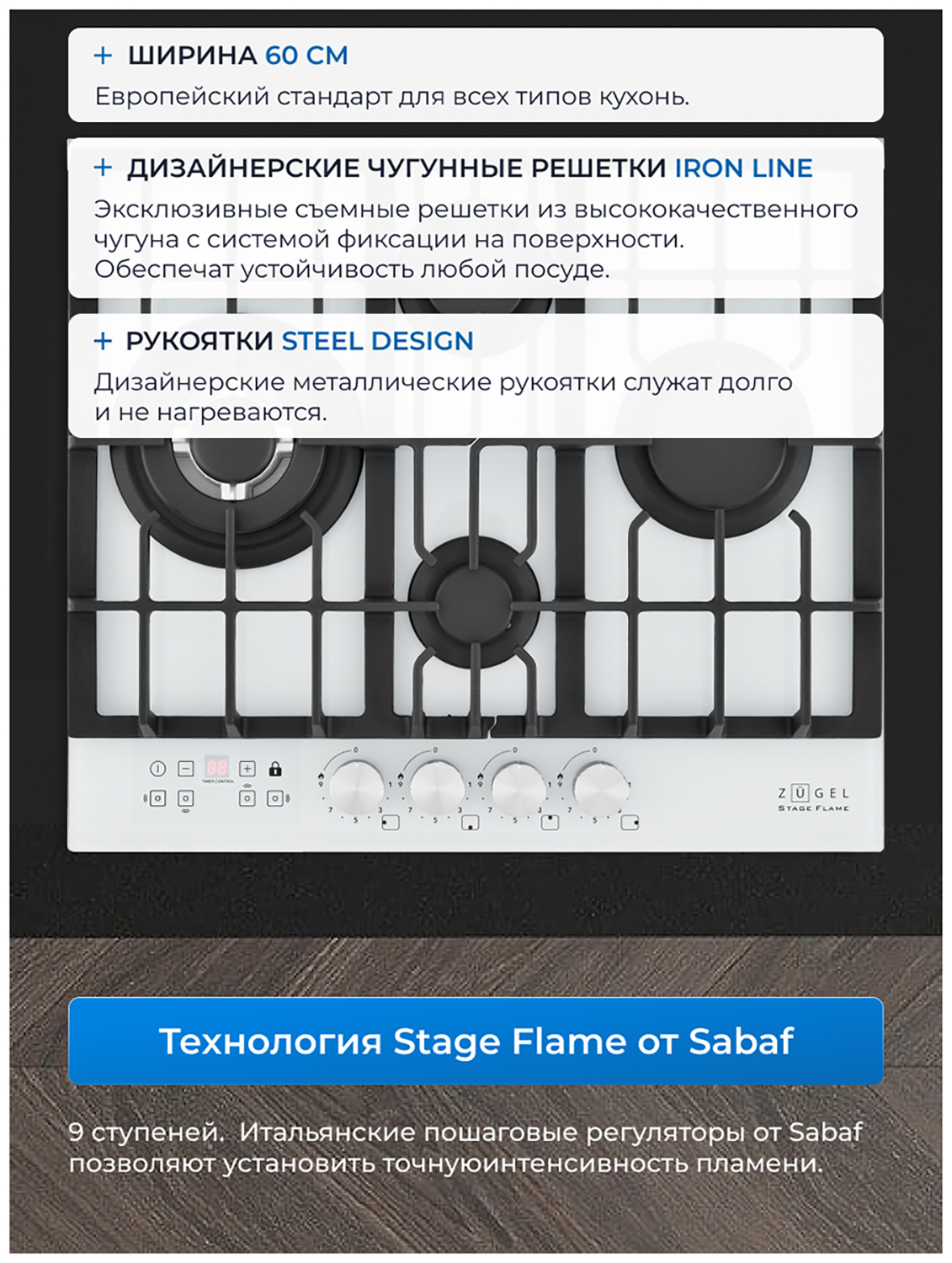 ZUGEL ZGH600W Газовая поверхность