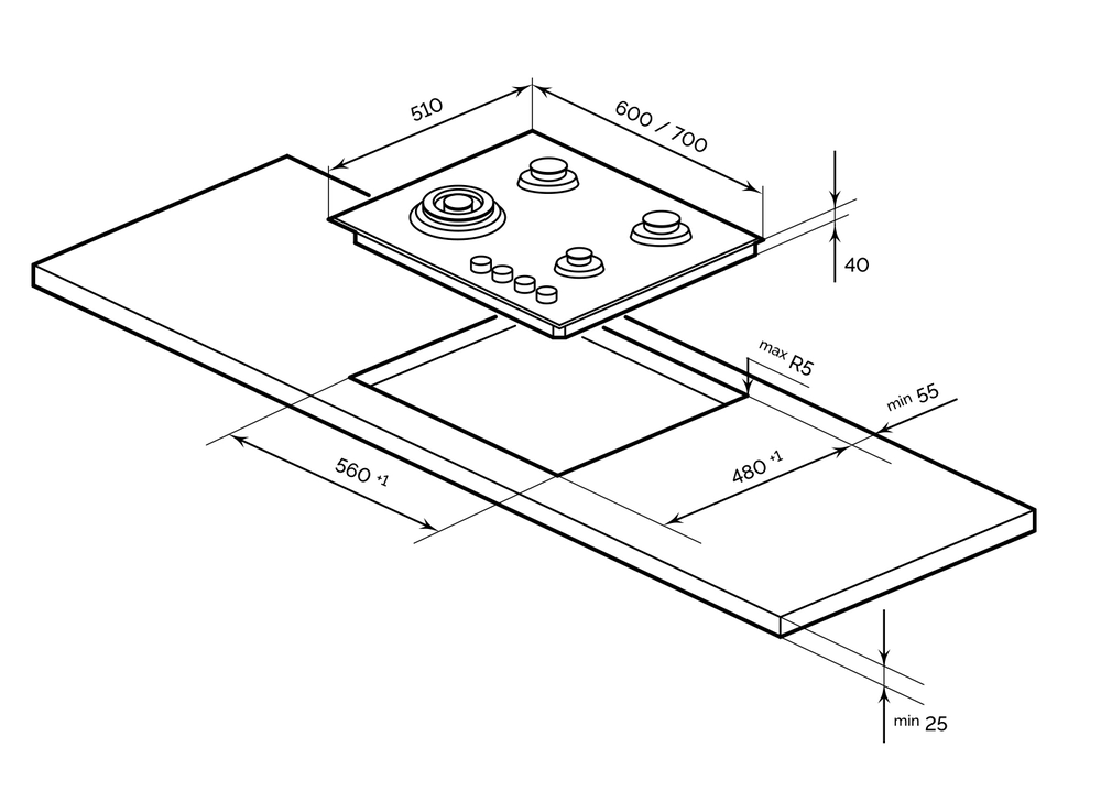 Описаниеповерхность газовая, 60 см, газ на стекле, 4 конфорки, решетки чугунные, серый
