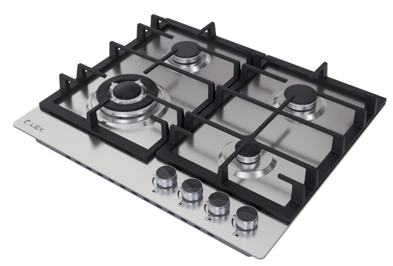 Описаниеповерхность газовая, 60 см, газ на металле, 4 конфорки, решетки чугунные, нержавеющая сталь