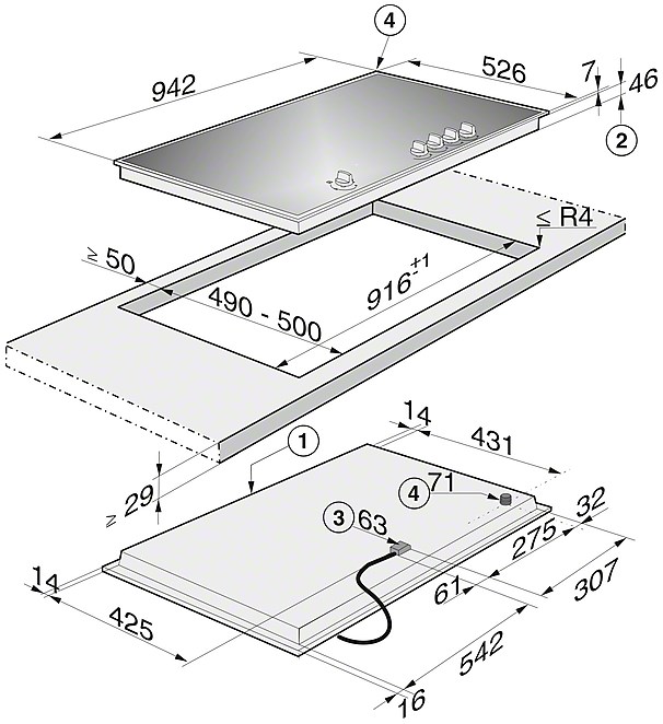 Miele KM 3054-1 OBSW Газовая поверхность