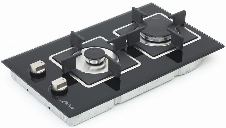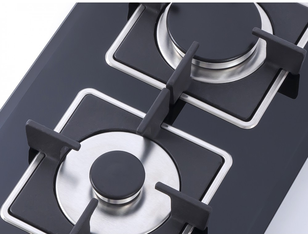 Описаниеповерхность газовая, 30 см, газ на стекле, 2 конфорки, решетки чугунные, черный