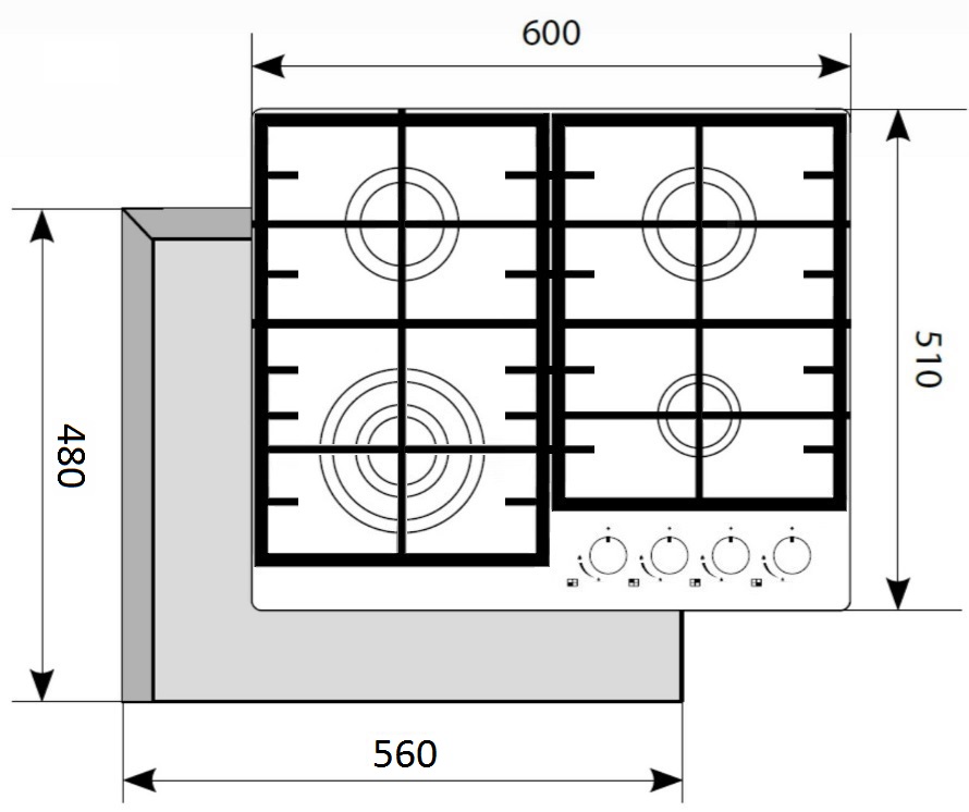 Описаниеповерхность газовая независимая, 60 см, газ на стекле, 4 конфорки, решетки чугунные, черный