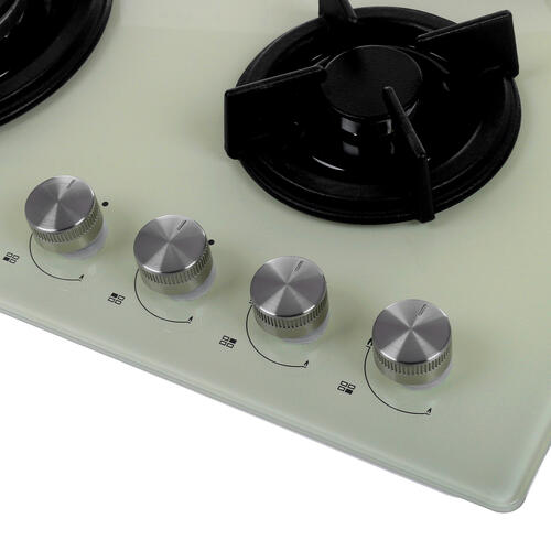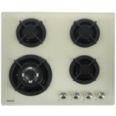 Описаниеповерхность газовая независимая, 60 см, газ на стекле, 4 конфорки, решетки чугунные, бежевый