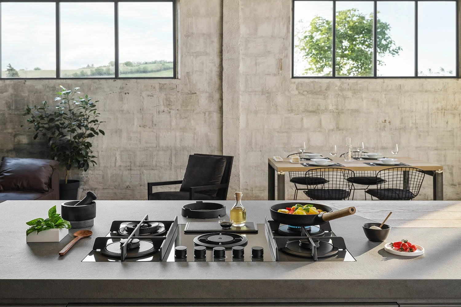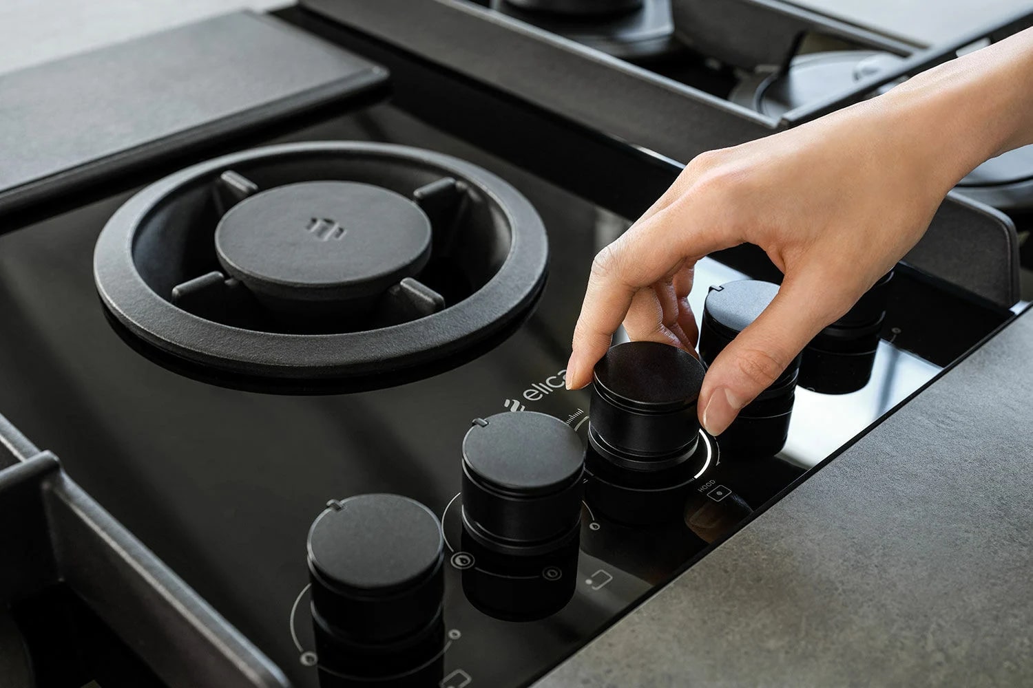 Описаниеповерхность газовая независимая с встроенной вытяжкой, 88 см, газ на стекле, 4 конфорки, решетки чугунные, черный