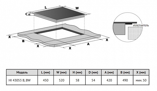 Описаниеповерхность варочная стеклокерамическая независимая индукционная, 45 см, белый, скошенные боковые края