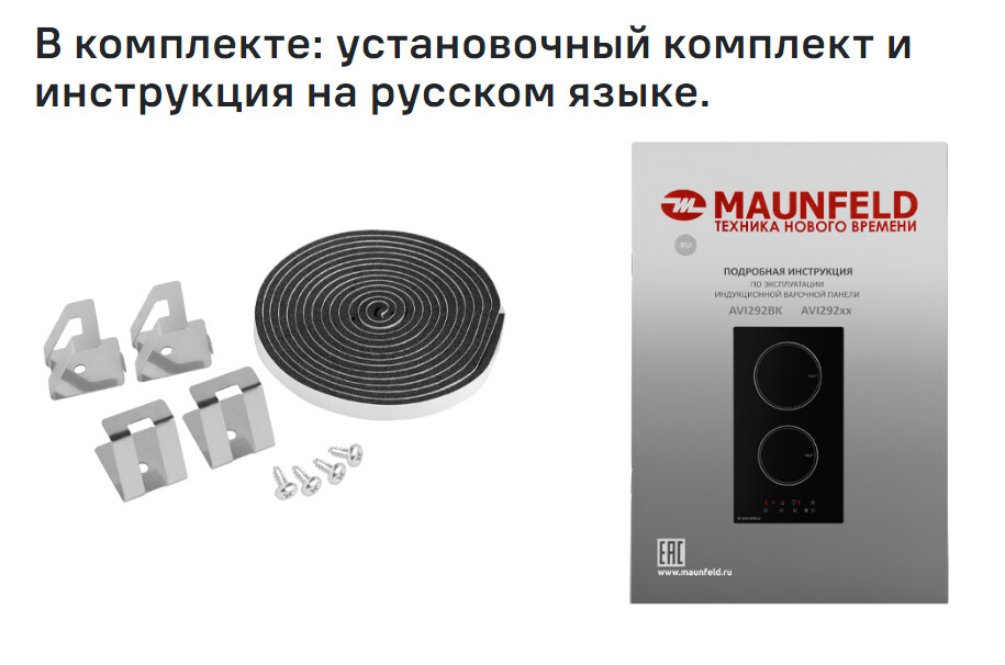 Размер (Высота) 6 см Размер (Глубина) 52 см Размер (Ширина) 29 см Цвет черный Ширина прибора 30 см Переключатели сенсорные Управление сенсорное Таймер есть Защита от детей есть Мощность подключения, Вт 3500 Фурнитура нет Гарантийный срок (месяцы) 12 Страна производитель Китай Ссылка на сайт производителя https://www.maunfeld.ru/catalog/induction/induktsionnaya-varochnaya-panel-maunfeld-avi292bk Всего конфорок 2 Рабочая поверхность стеклокерамика Количество индукционных конфорок 2 Тип поверхности индукционная Встроенная вытяжка нет Расположение панели управления спереди Зона расширения нет Функция Booster есть Дизайн рамки без рамки Размер в упаковке (Высота) 11 см Размер в упаковке (Ширина) 33 см Размер в упаковке (Глубина) 56,5 см Вес прибора 4,5 кг Размер (Ширина), см 29 Размер (Высота), см (Общие) 6 Размер (Глубина), см 52 - Отзывы