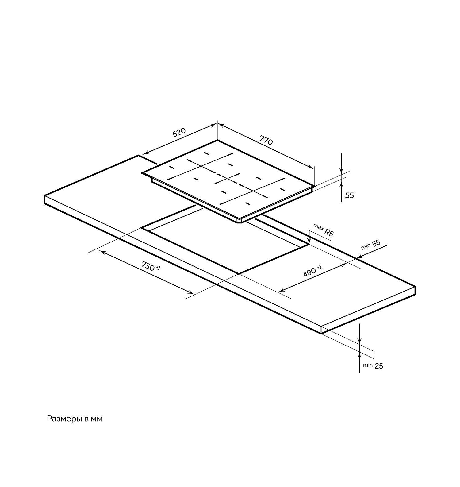 Описаниеповерхность варочная стеклокерамическая независимая индукционная, 77 см, черный, скошенные края