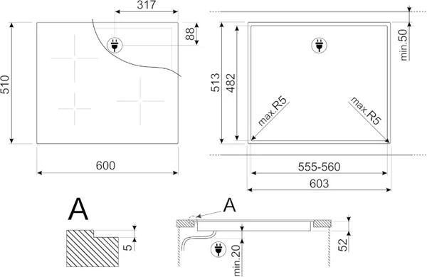 Описаниеповерхность варочная стеклокерамическая независимая индукционная, 60 см, кремовый, прямой край