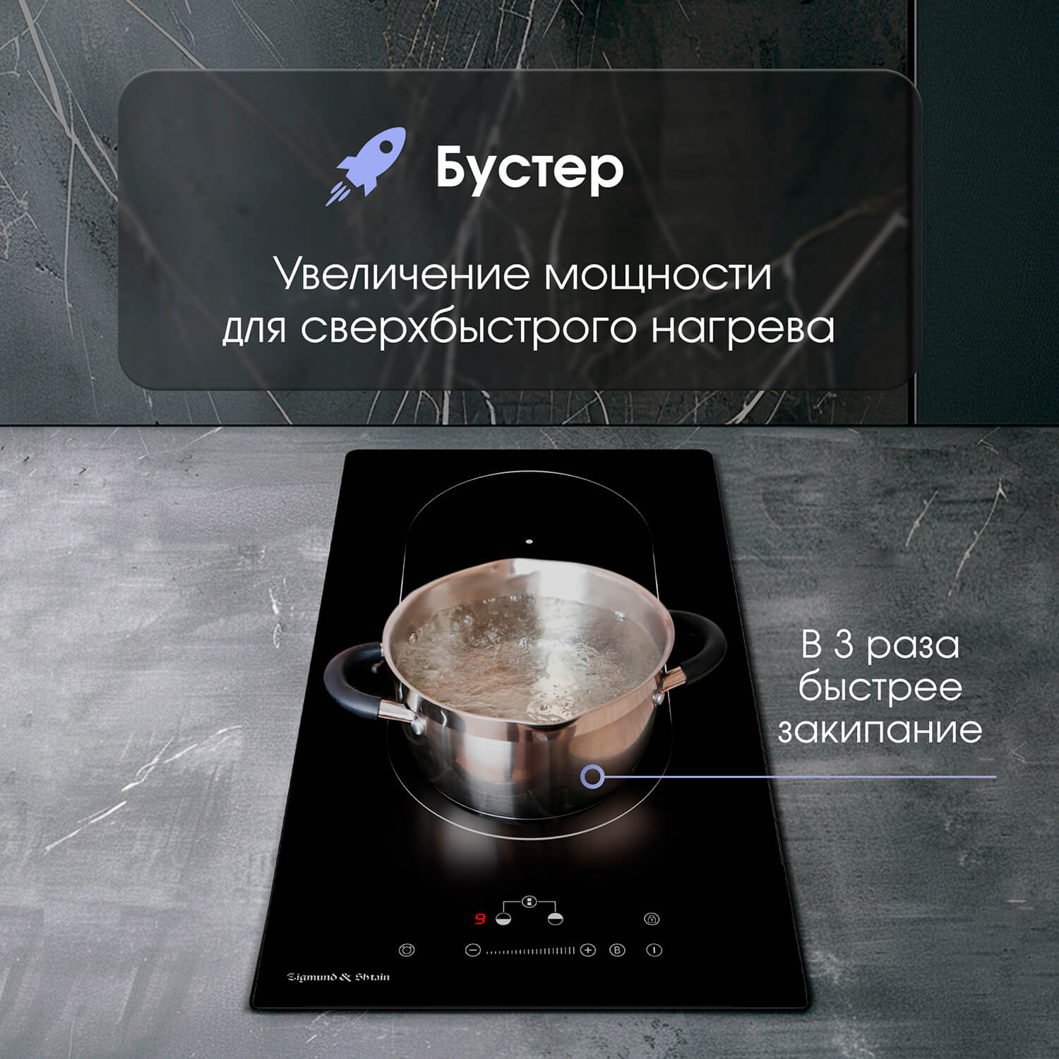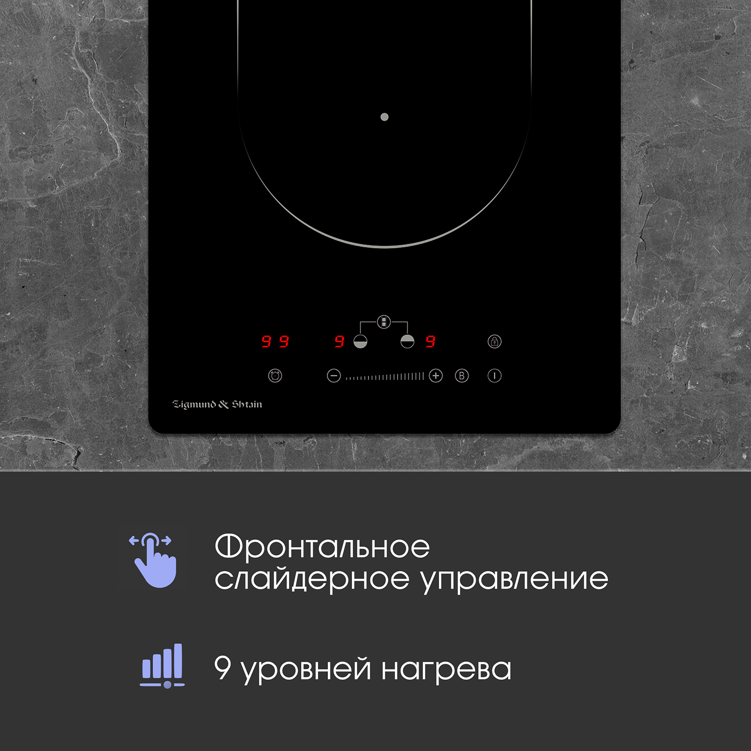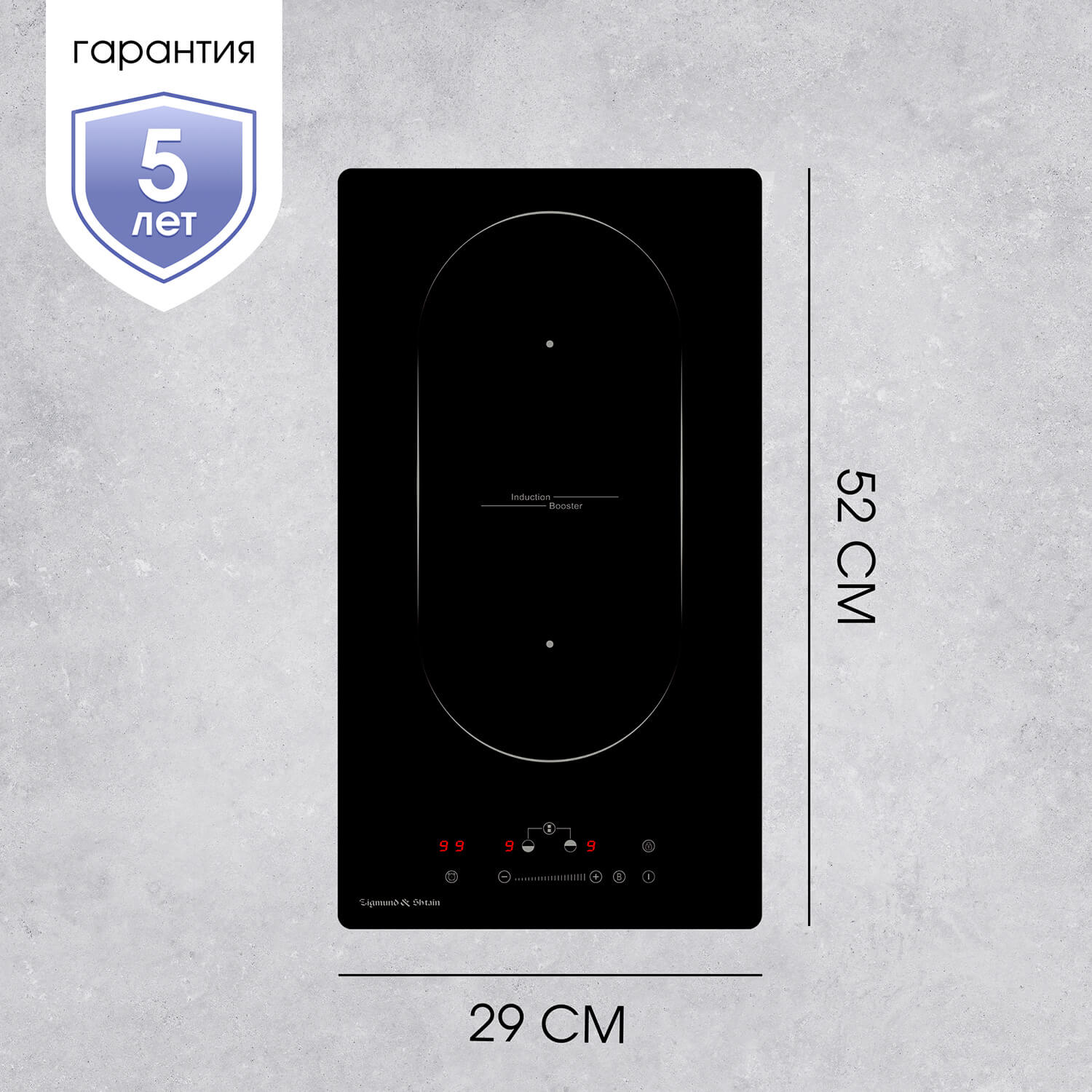 Размер (Высота) 6 см Размер (Глубина) 52 см Размер (Ширина) 29 см Цвет черный Ширина прибора 30 см Переключатели сенсорные Управление сенсорый слайдер Таймер есть Защита от детей есть Мощность подключения, Вт 3500 Фурнитура нет Гарантийный срок (месяцы) 60 Страна производитель Китай Ссылка на сайт производителя https://www.zigmundshtain.ru/vstraivaemaya-tekhnika/zigmund__amp__shtain/5543/ Всего конфорок 2 Рабочая поверхность стеклокерамика Количество индукционных конфорок 2 Тип поверхности индукционная Встроенная вытяжка нет Расположение панели управления спереди Зона расширения объединение всех зон в одну большую Функция Booster есть Дизайн рамки без рамки Размер в упаковке (Высота) 11,5 см Размер в упаковке (Ширина) 35 см Размер в упаковке (Глубина) 57,5 см - Отзывы