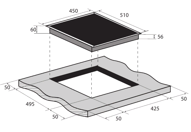 Описаниеповерхность варочная стеклокерамическая независимая индукционная, 45 см, белый