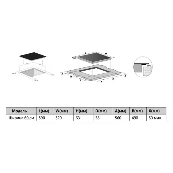 Описаниеповерхность варочная стеклокерамическая независимая индукционная, 60 см, черный