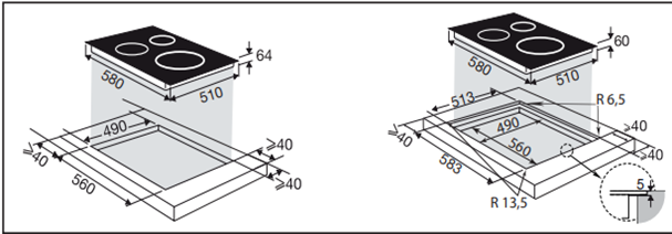 Описаниеповерхность варочная стеклокерамическая независимая индукционная, 58х51х6 см, черный, скошенные края