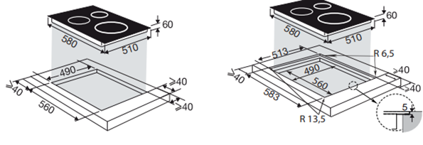 Описаниеповерхность варочная стеклокерамическая независимая индукционная, 58х51х6 см, черный, скошенные края