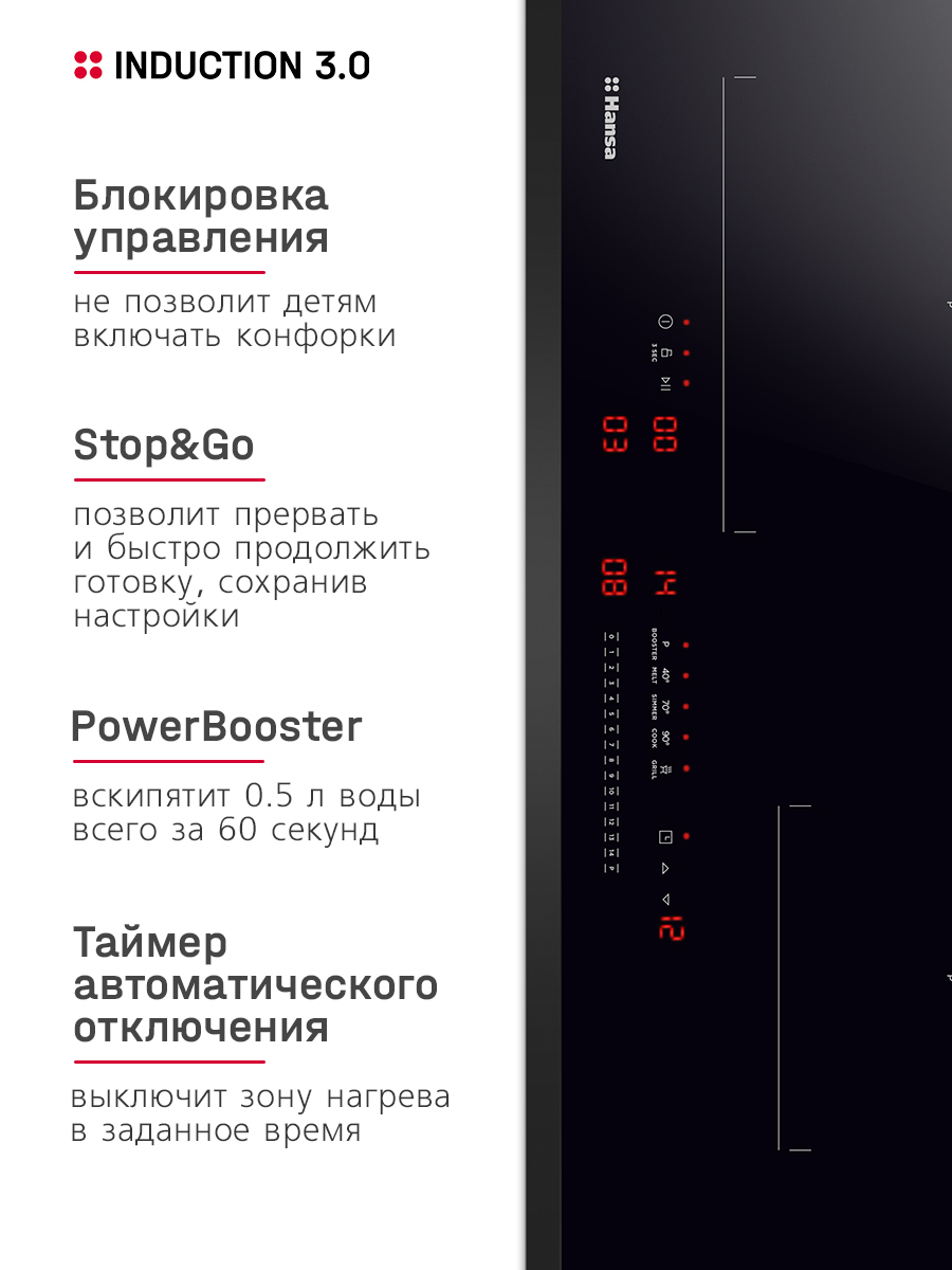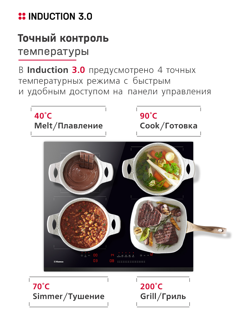 Описаниеповерхность варочная стеклокерамическая независимая индукционная, 60 см, черный