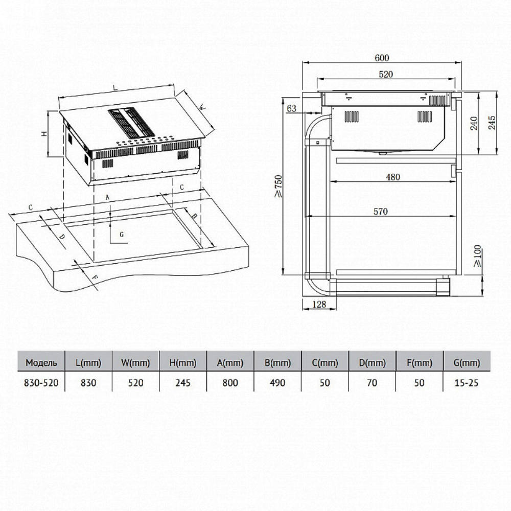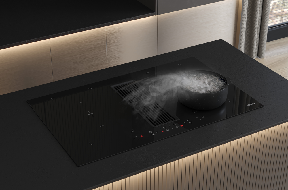 Описаниеповерхность варочная стеклокерамическая индукционная с встроенной вытяжкой, 83 см, черный, скошенные края