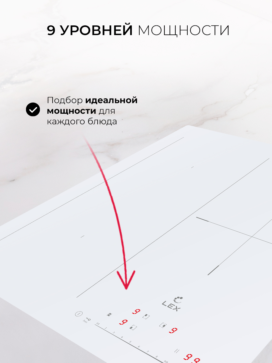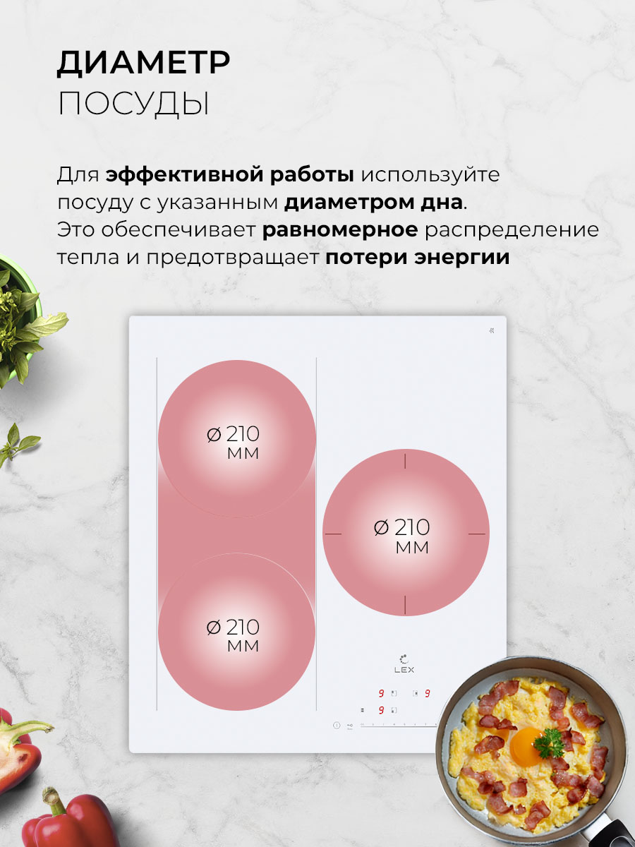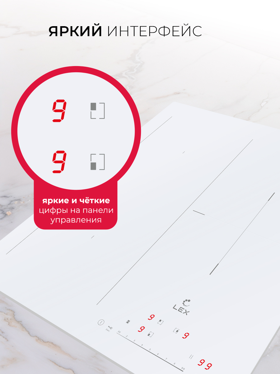 Размер (Высота) 5,9 см Размер (Глубина) 52 см Размер (Ширина) 45 см Цвет белый Ширина прибора 45 см Переключатели сенсорные, слайдер Управление сенсорное Таймер есть Защита от детей есть Мощность подключения, Вт 5700 Фурнитура нет Гарантийный срок (месяцы) 36,6 Страна производитель Китай Ссылка на сайт производителя https://lex1.ru/shop/varochnye-paneli/indukcionnye-varochnye-poverxnosti/lex-evi-431-a-wh?ysclid=lu9p14oqt551047980 Всего конфорок 3 Рабочая поверхность стеклокерамика Количество индукционных конфорок 3 Тип поверхности индукционная Встроенная вытяжка нет Расположение панели управления спереди Зона расширения Flexi zone, 1 Функция Booster есть Дизайн рамки без рамки Размер в упаковке (Высота) 11,5 см Размер в упаковке (Ширина) 51,5 см Размер в упаковке (Глубина) 56 см Вес прибора 6,3 кг Размер (Ширина), см 45 Размер (Высота), см (Общие) 5,9 Размер (Глубина), см 52 - Отзывы