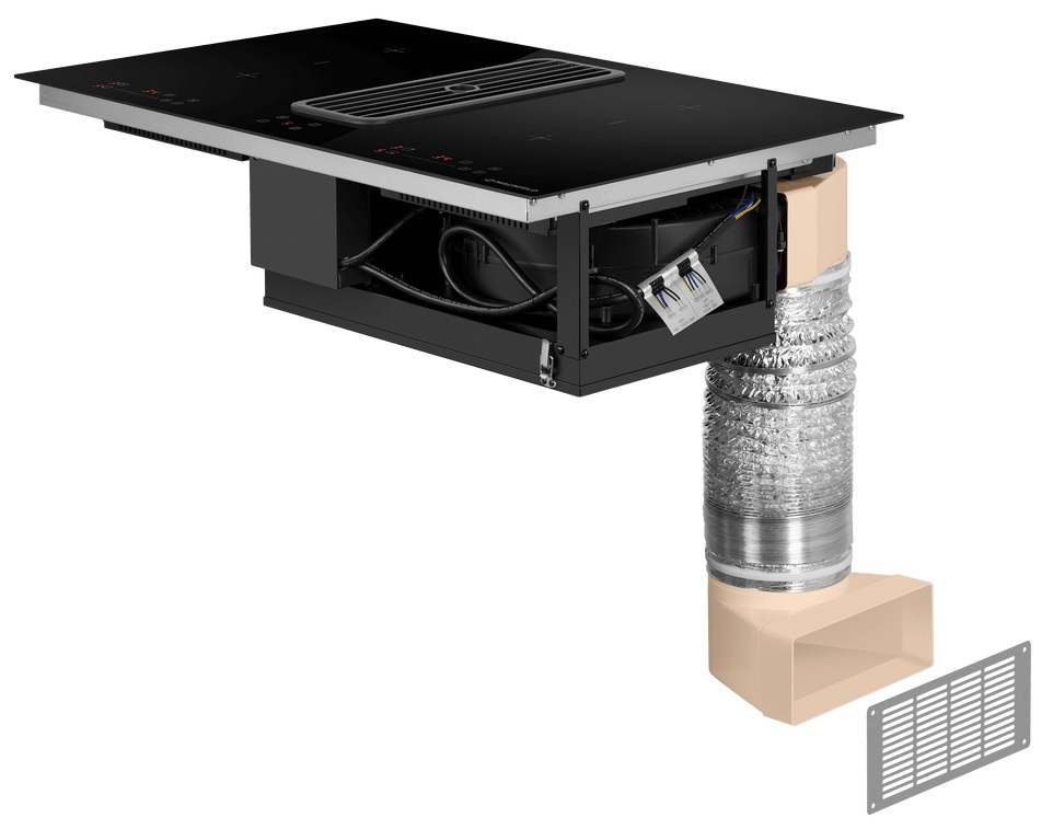 Описаниеповерхность варочная стеклокерамическая независимая индукционная с встроенной вытяжкой, 80 см, черный