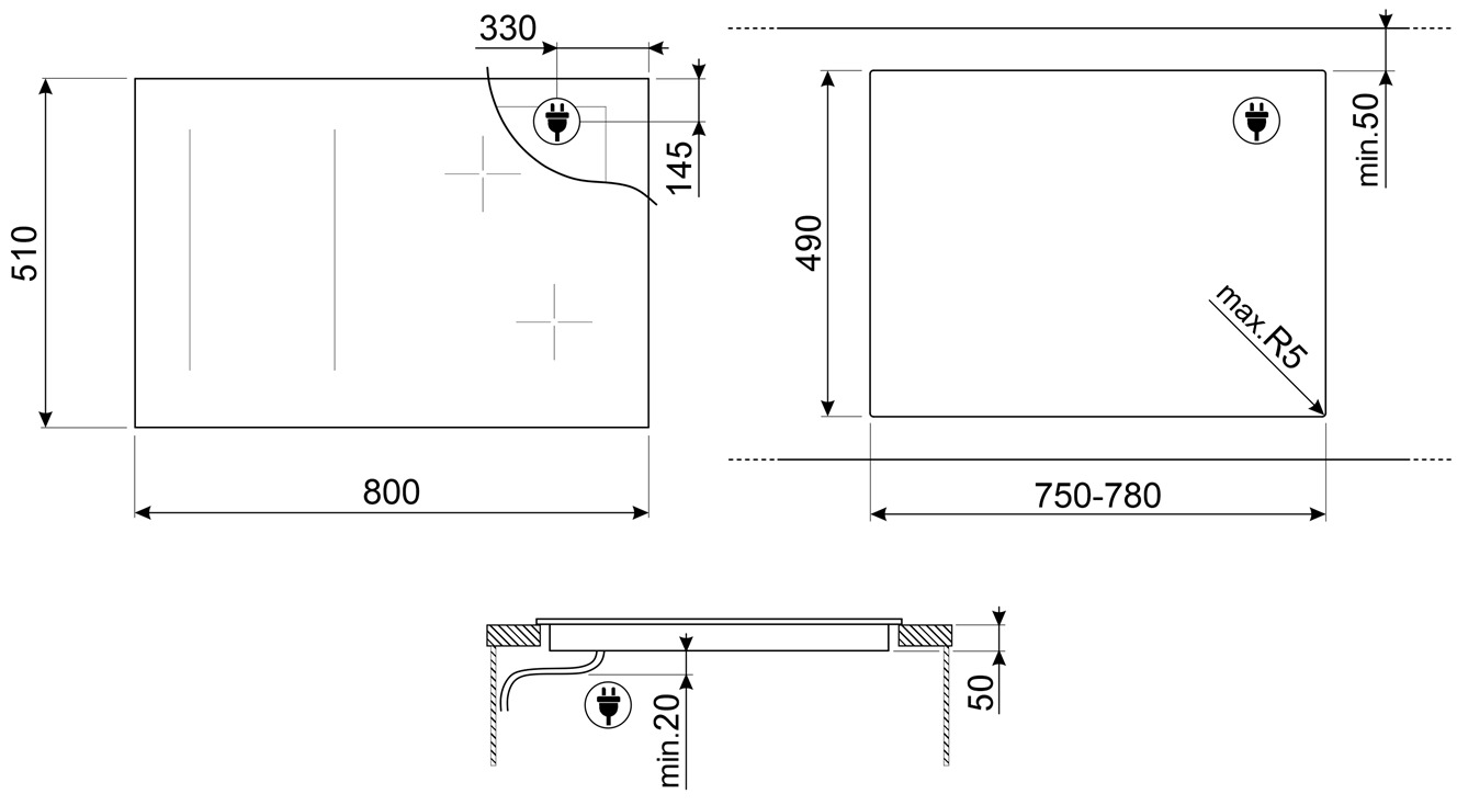 Описаниеповерхность варочная стеклокерамическая независимая индукционная, 80 см, черный