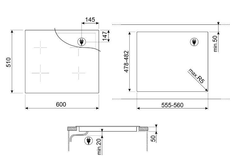 Описаниеповерхность варочная стеклокерамическая независимая индукционная, 60 см, черный, прямой край