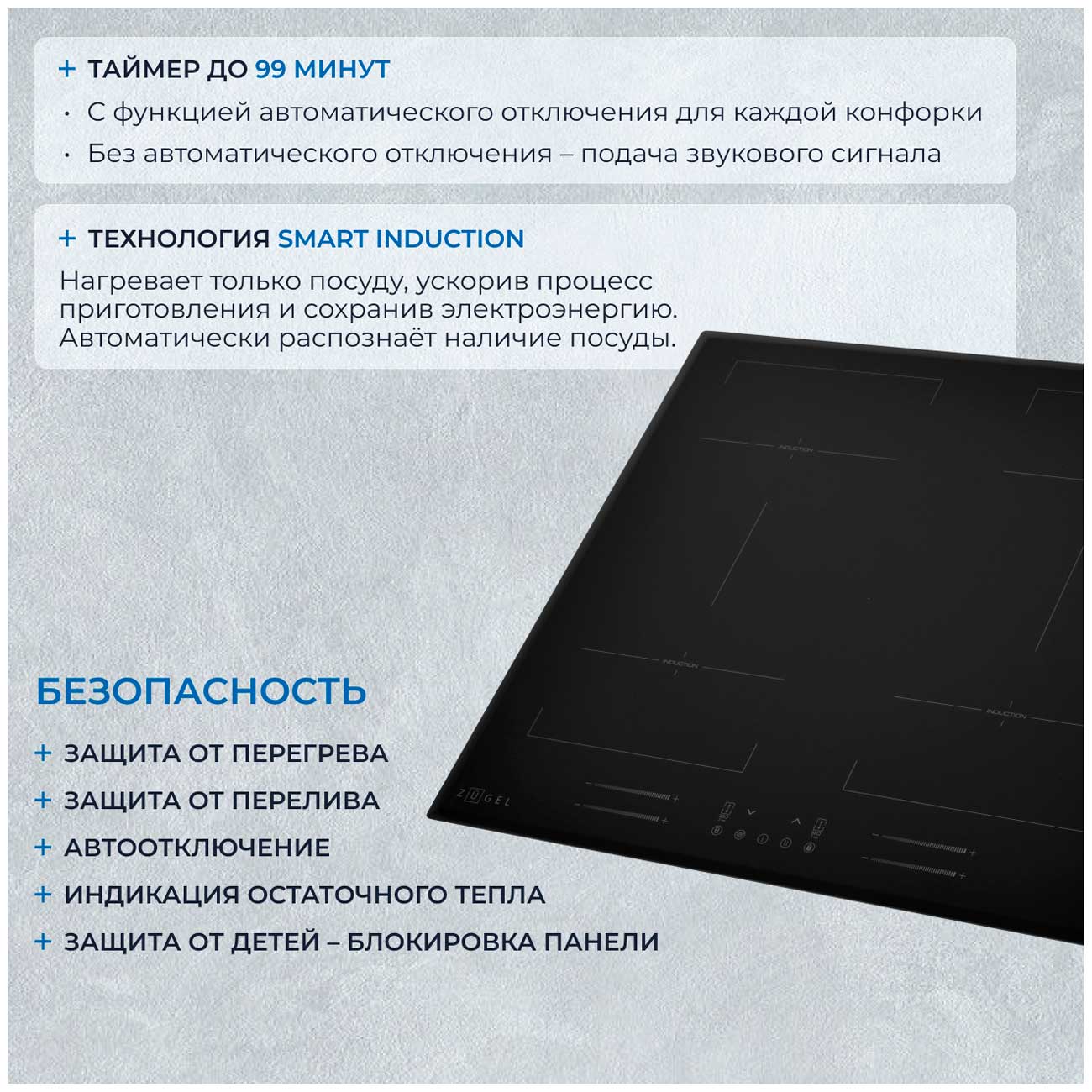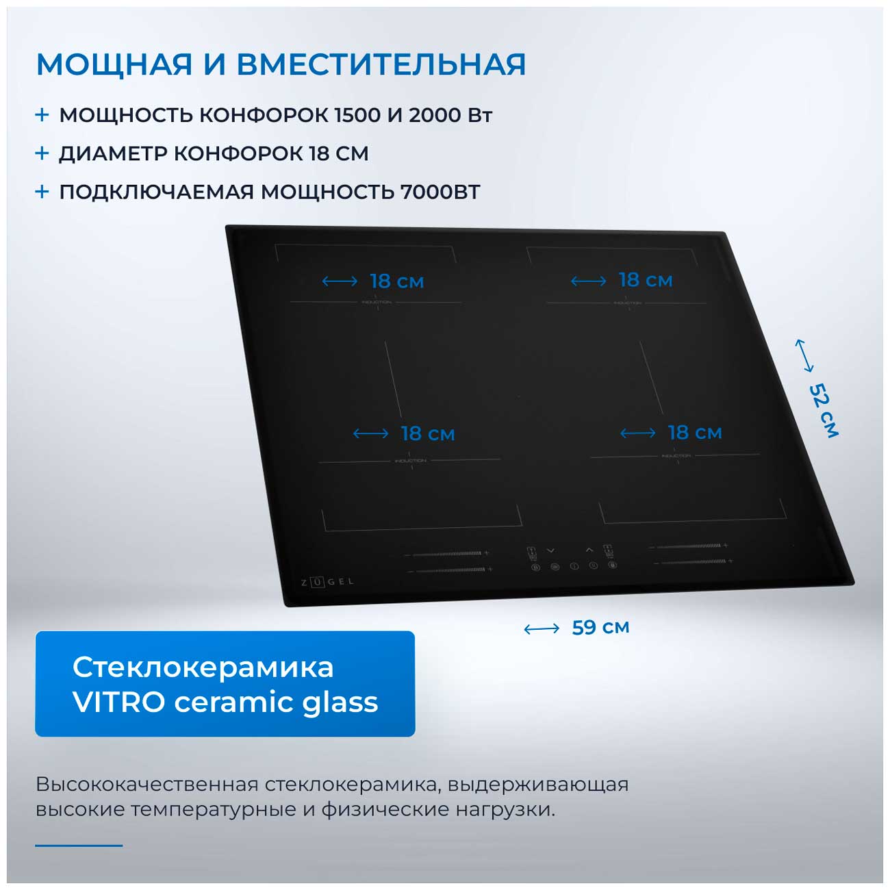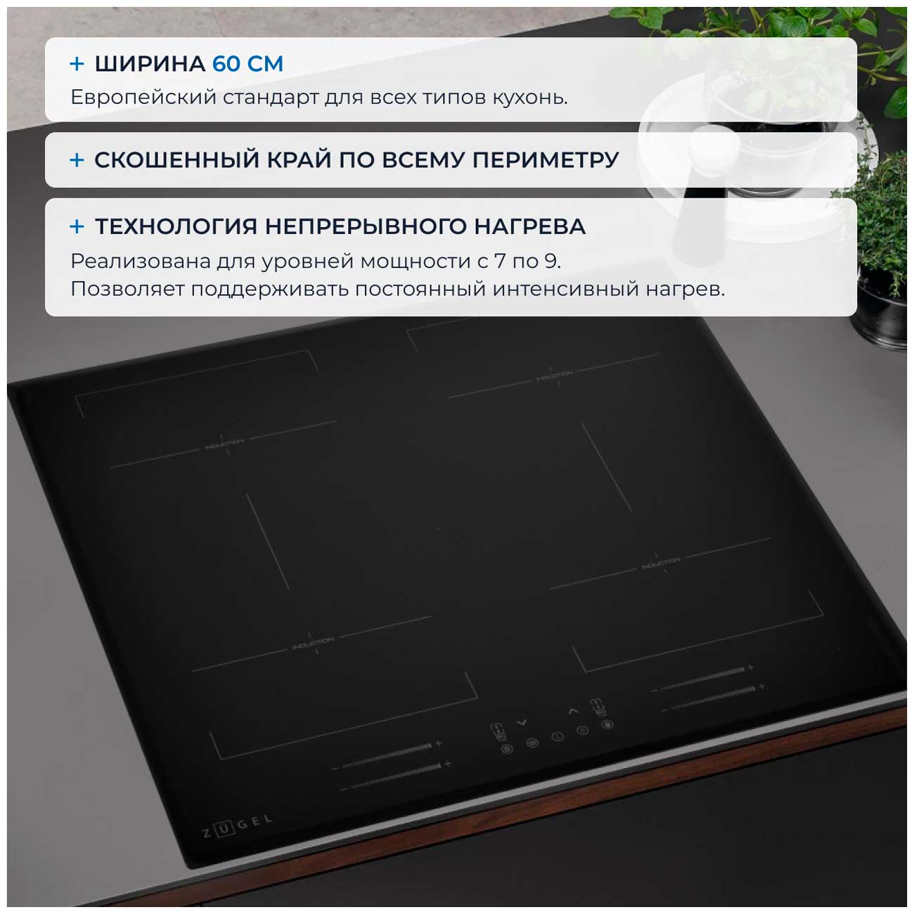 Описаниеповерхность варочная стеклокерамическая независимая индукционная, 60 см, черный